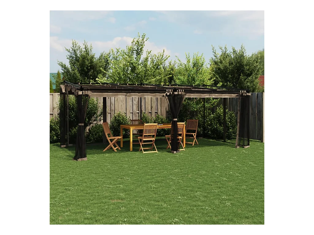 Cenador de jardín con techo retráctil color topo 3x3 m aluminio