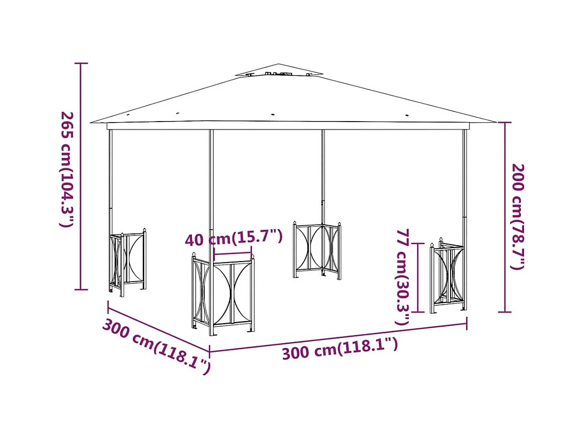 Cenador con paredes laterales antracita 300x300x270 cm acero