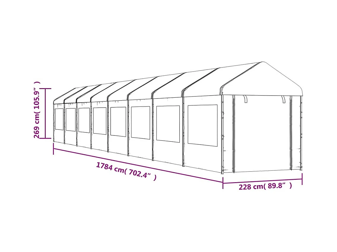 Cenador con techo polietileno blanco 17,84x4,08x3,22 m