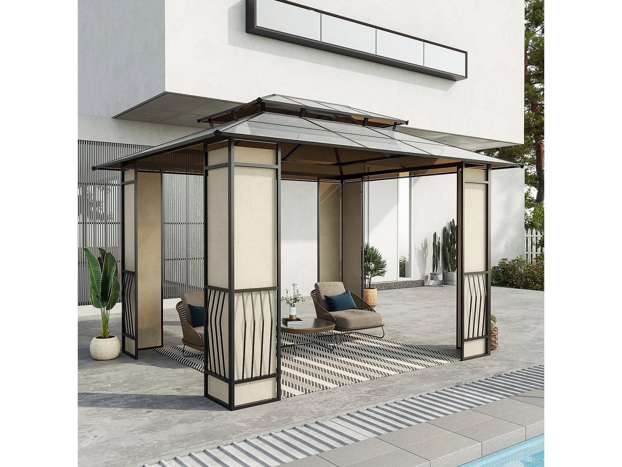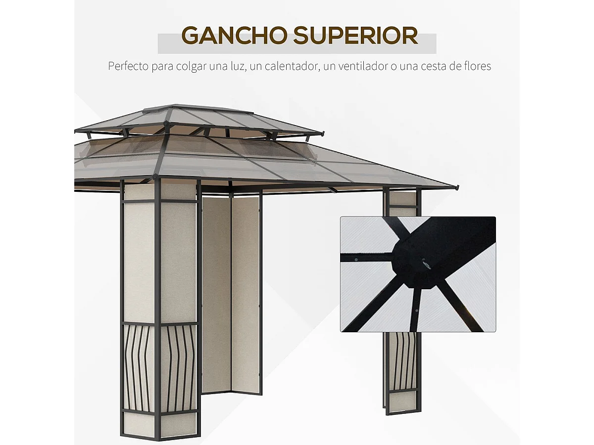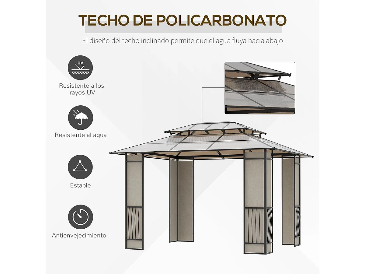 Cenador de jardín marrón 365x300x275 cm Outsunny