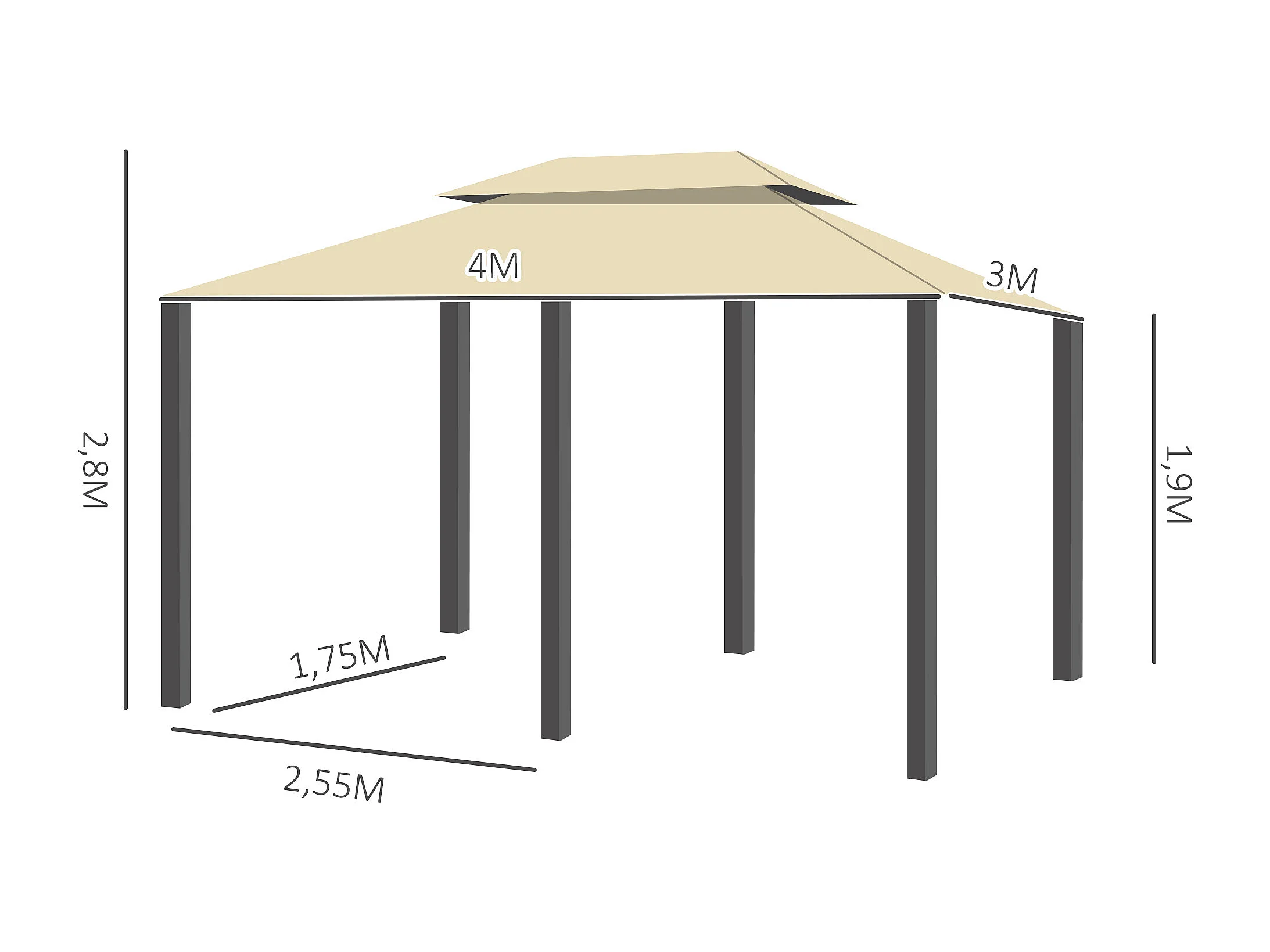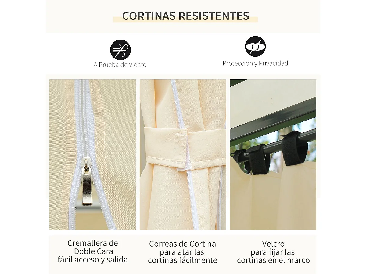 Cenador de jardín crema 400x300x280 cm Outsunny