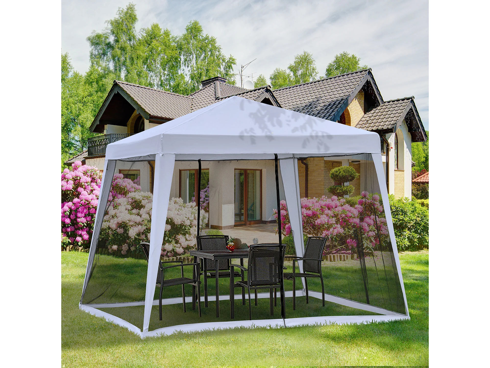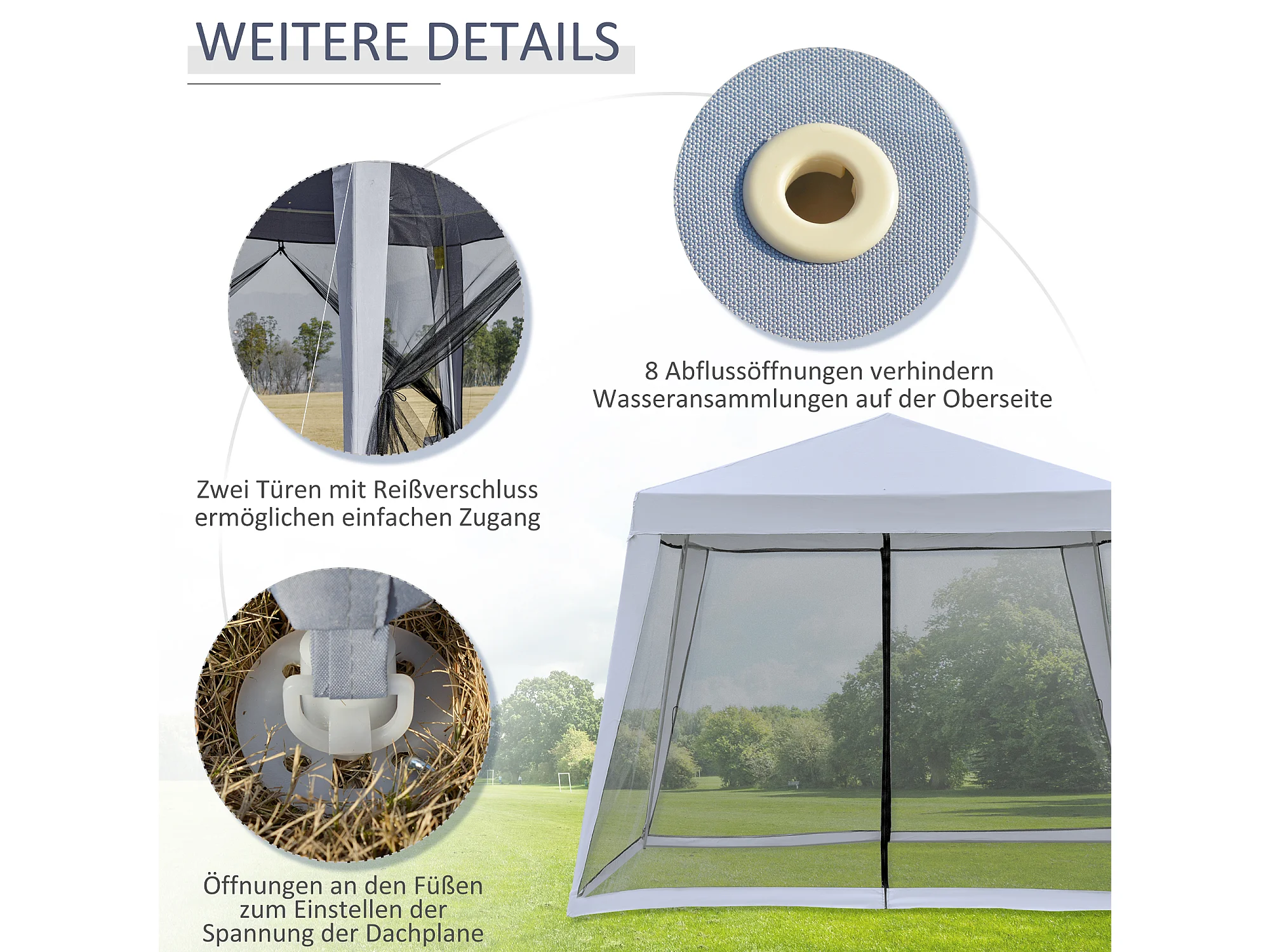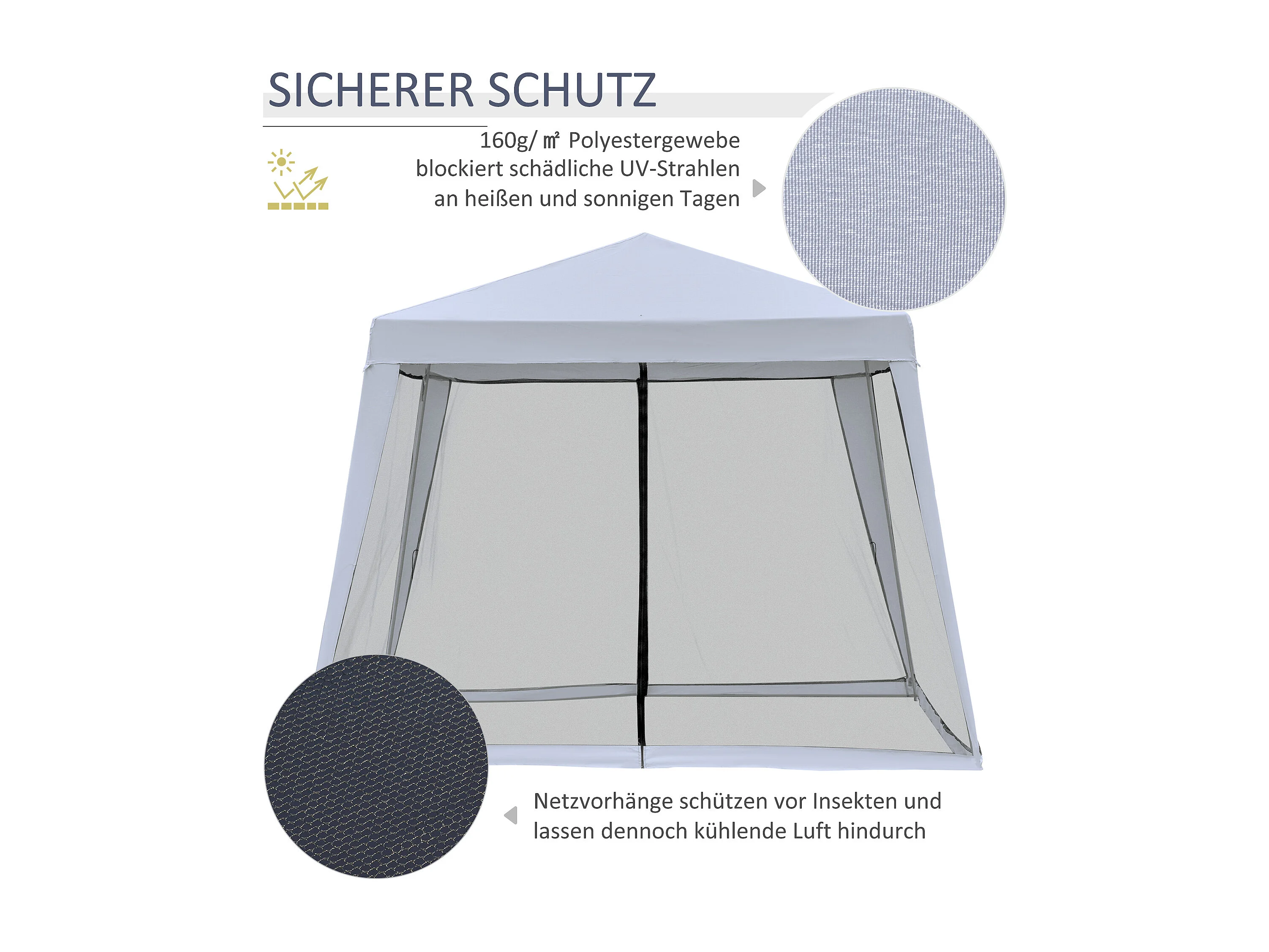 Cenador de jardín con mosquitera, estructura de metal, poliéster, gris (300x300x245 cm)