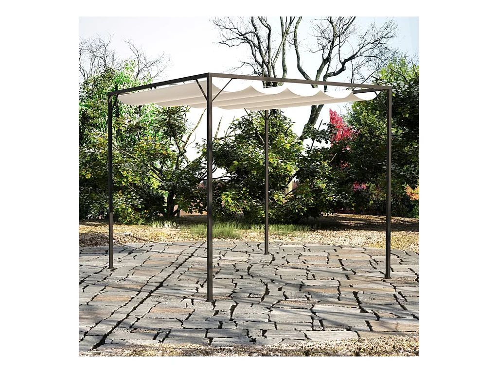 Cenador de jardín con cortina lateral color crema 3x3x2,25 m