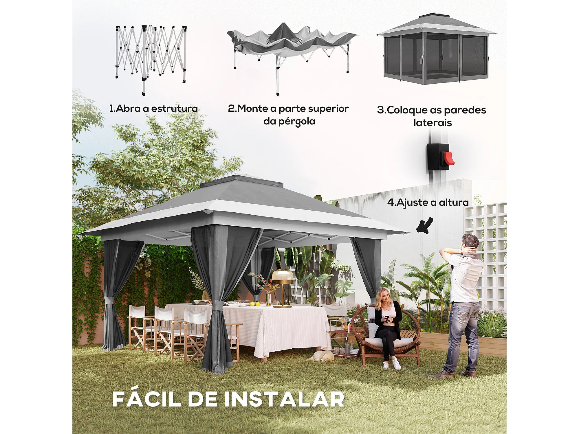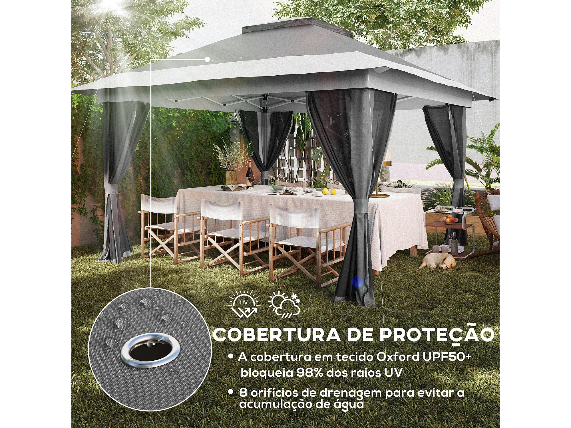 Cenador Dhile Outsunny plegable + cortinas removibles gris oscuro 280x356 cm