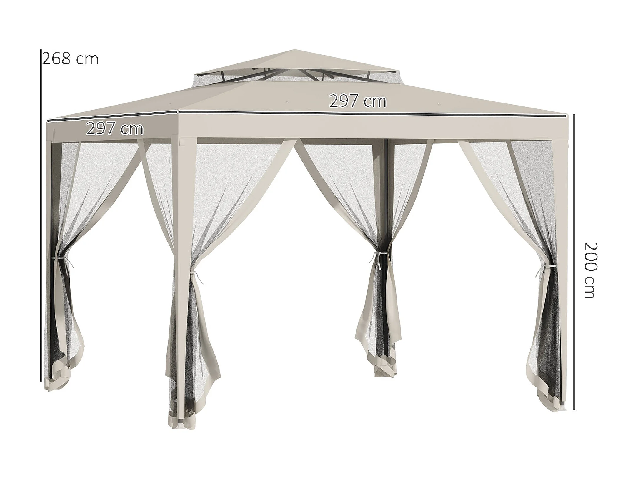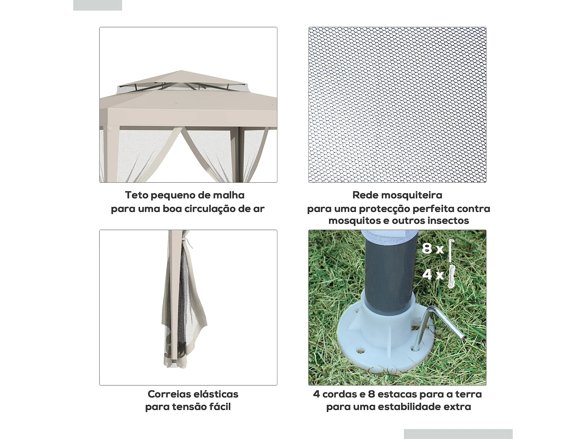 Cenador Girasol Outsunny mosquiteras laterales beige 268x297x297 cm