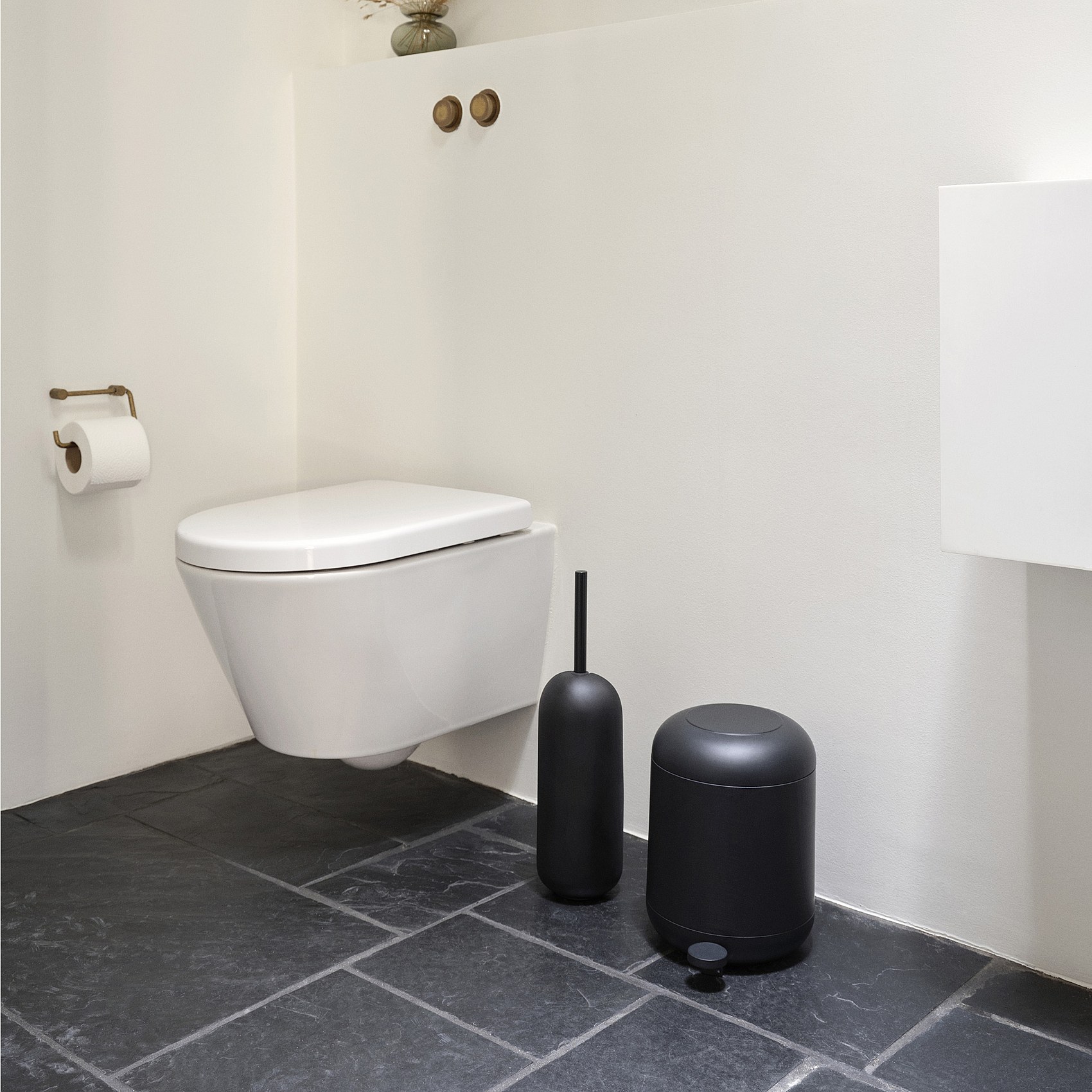 Aporta un toque de modernidad a tu cuarto de baño con este cepillo de inodoro de estilo minimalista, inspirado en el diseño japonés. Sus formas redondeadas y líneas depuradas se integran perfectamente en un ambiente contemporáneo, creando una atmósfera relajante y elegante.