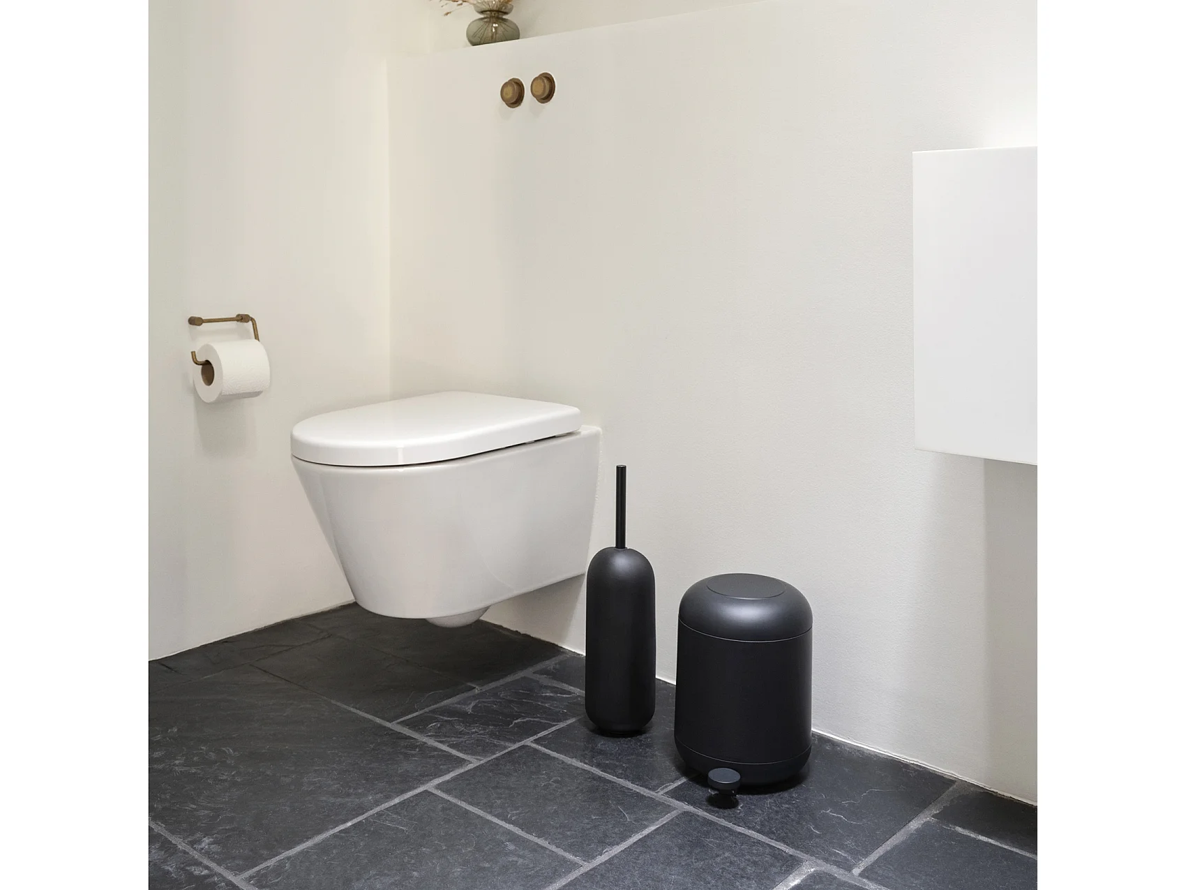 Portarrollos de papel higiénico de pie "Tobias" con escobillero en metal cromado y base ovalada