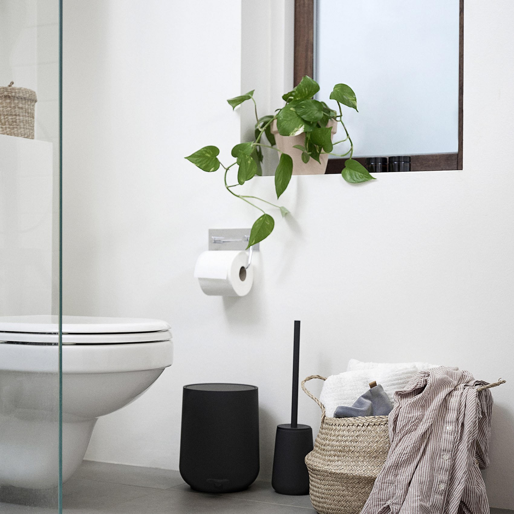 Aporta un toque de sofisticación a tu cuarto de baño con este cepillo de WC de diseño elegante y minimalista. Fabricado en gres y acero, combina resistencia y estética moderna para ofrecer una solución funcional y decorativa.