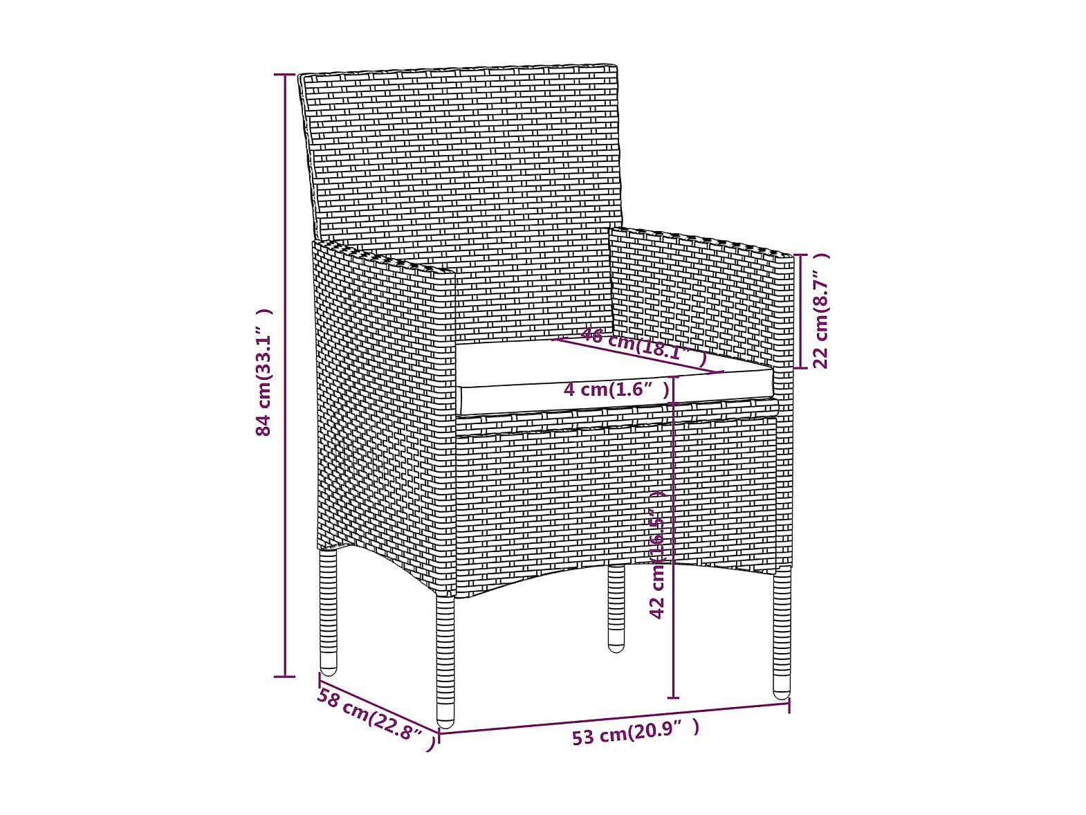 Zyldr Set comedor jardín 3 pzas y cojines ratán sintético negro gris