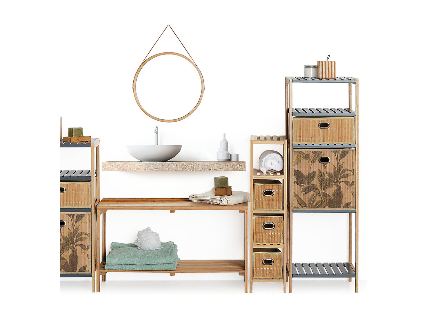 Su estructura de bambú garantiza resistencia y durabilidad, mientras que el asa de metal, plegable para mayor practicidad, asegura un manejo fácil.