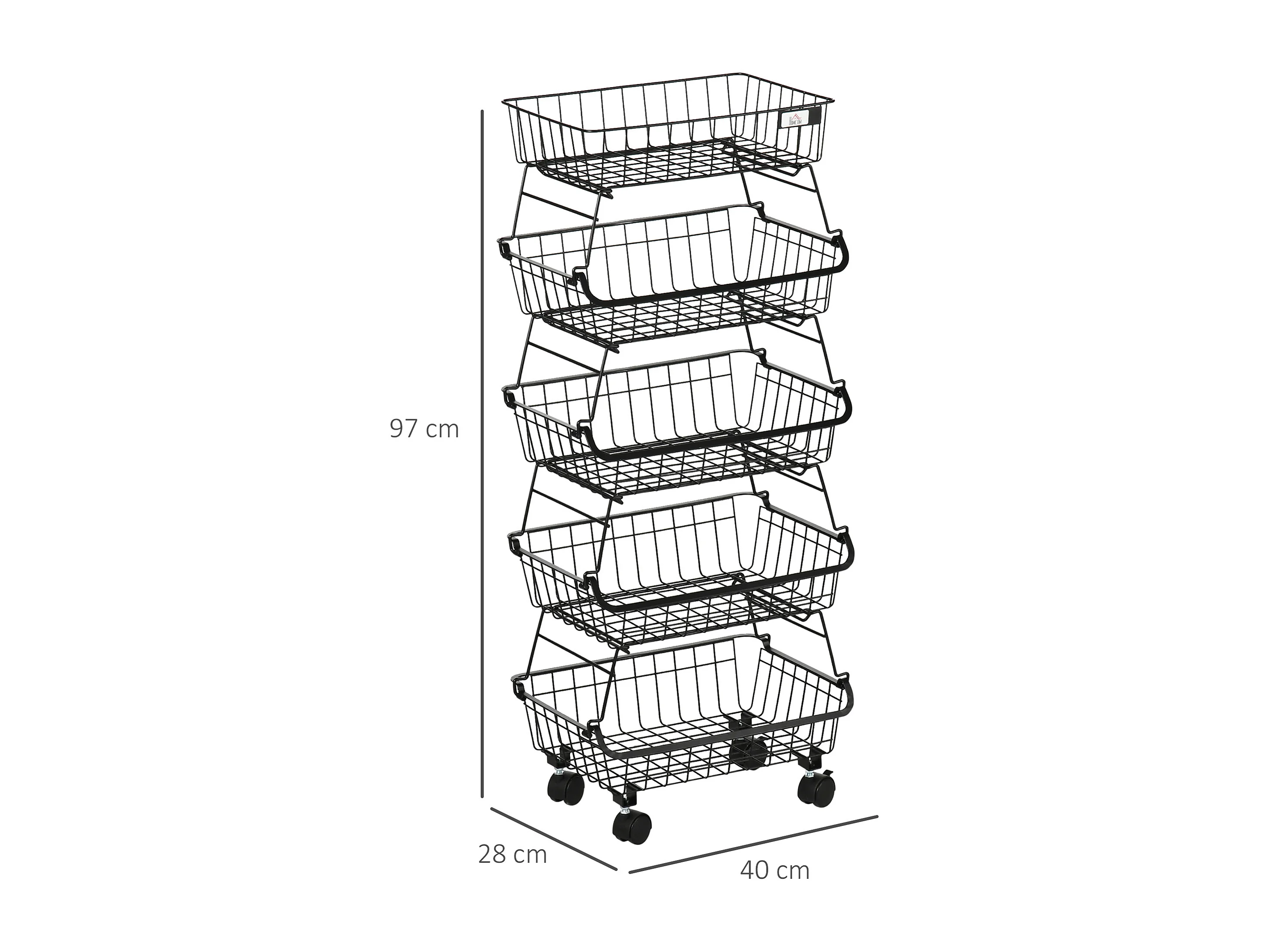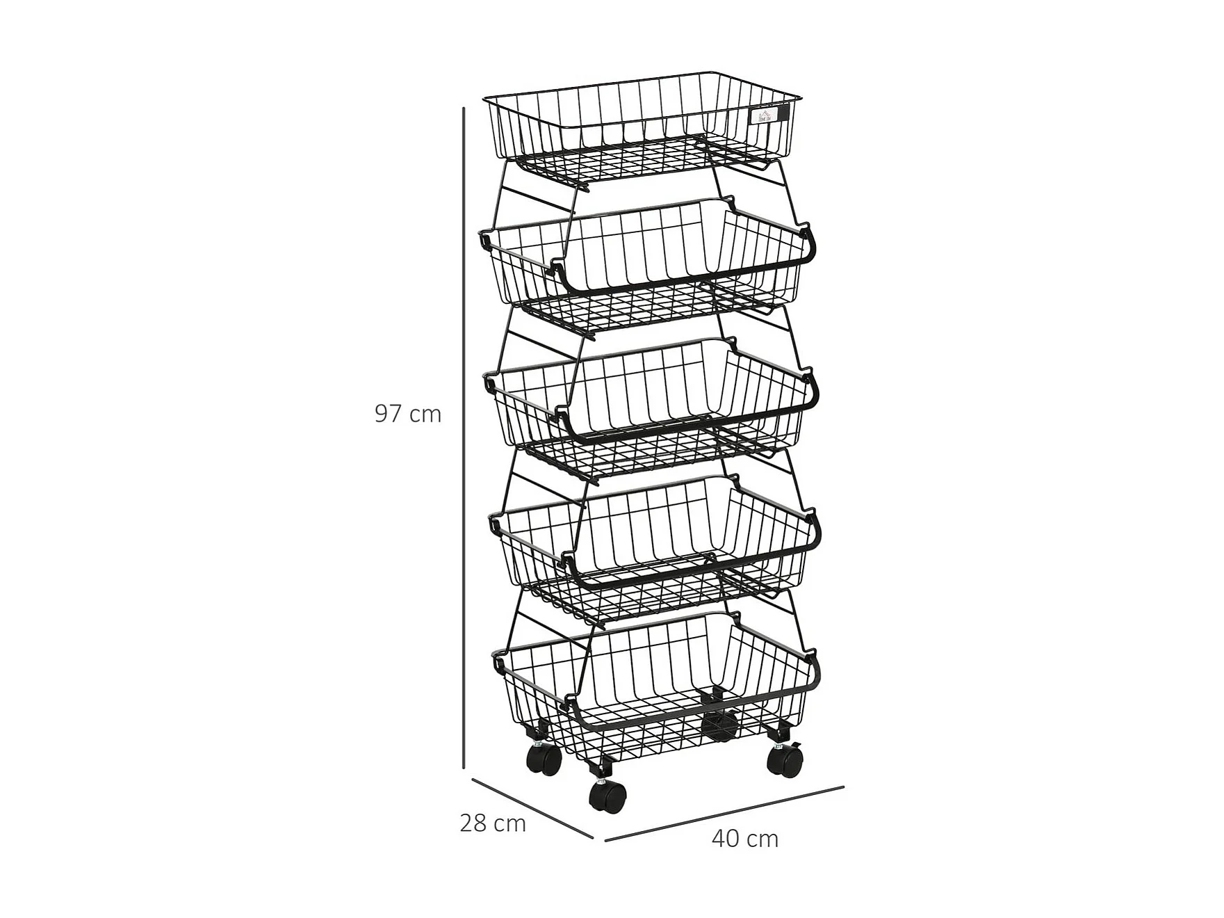 Cesta de frutas negro 40x28x97 cm HOMCOM
