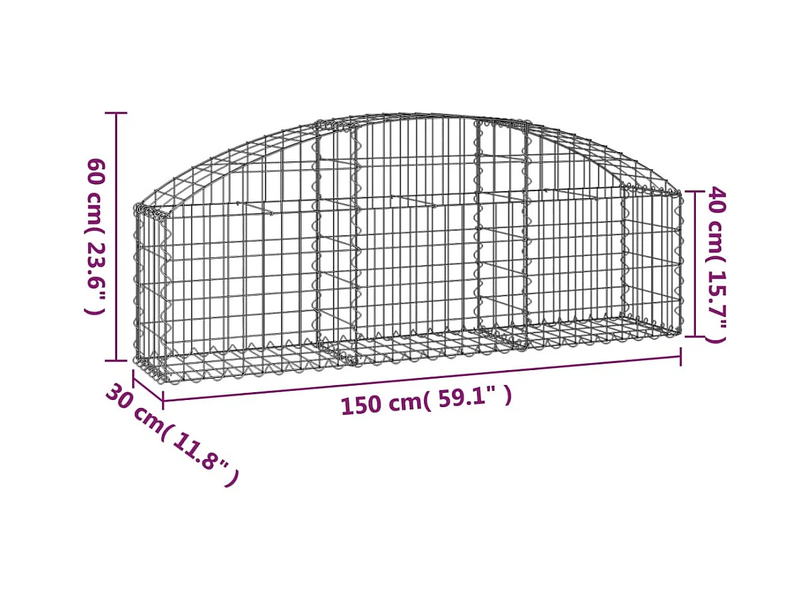 Cesta de gaviones forma arco hierro galvanizado 150x30x40/60 cm ES98233