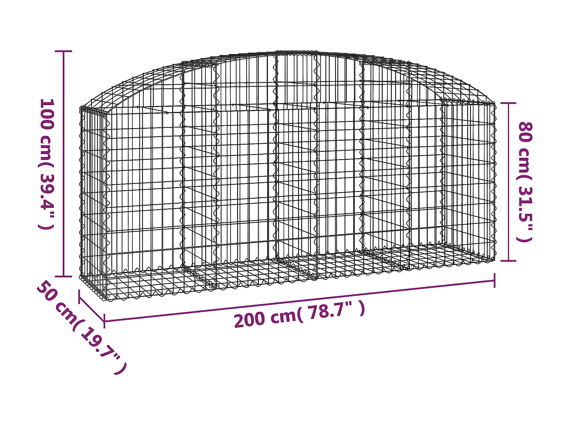 Cesta de gaviones forma arco hierro galvanizado 200x50x80/100cm ES77589