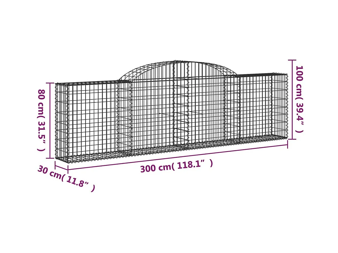Cesta de gaviones forma arco hierro galvanizado 300x30x80/100cm ES33639