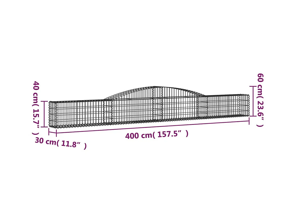 Cestas de gaviones 2 uds forma de arco hierro 400x30x40/60 cm ES63977