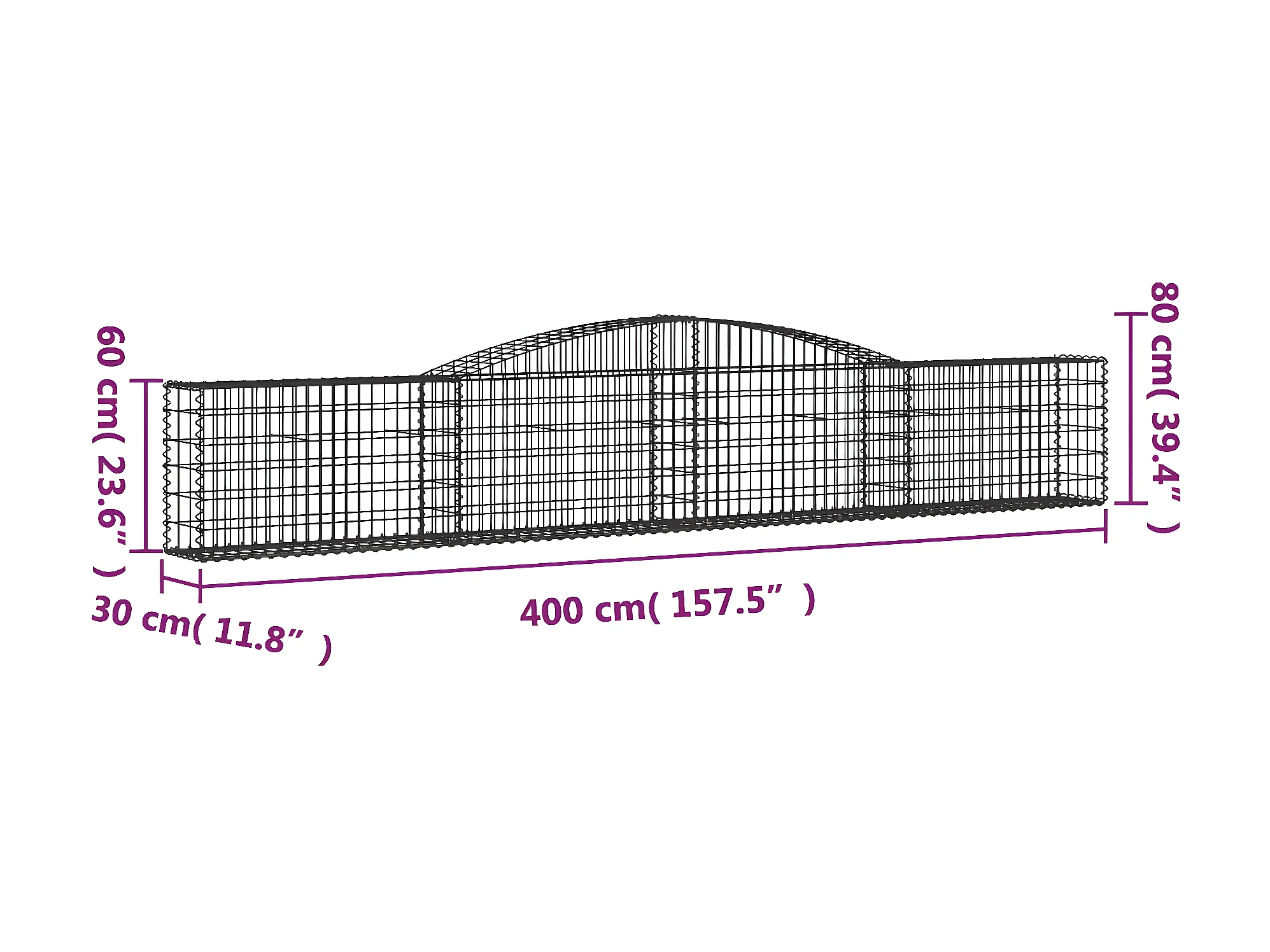 Cesta de gaviones forma arco hierro galvanizado 400x30x60/80 cm ES48933