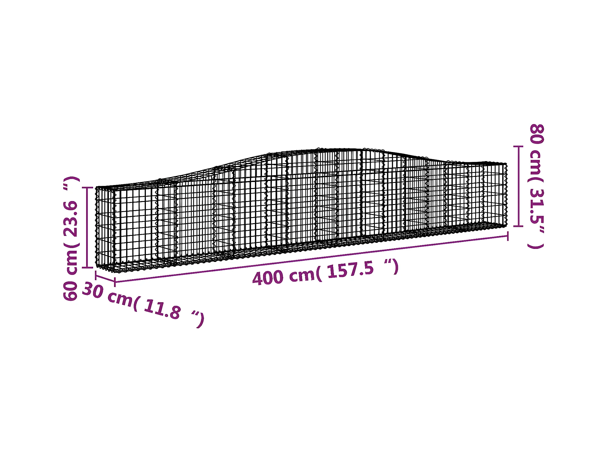 Cesta de gaviones forma arco hierro galvanizado 400x30x60/80 cm ES48933
