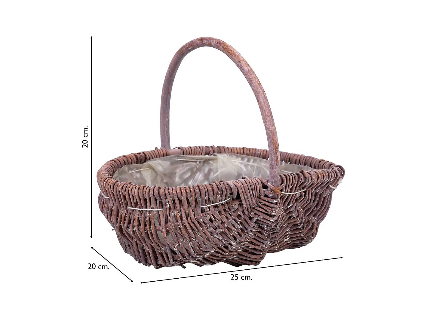 Cesta de mimbre marrón 25x20x20