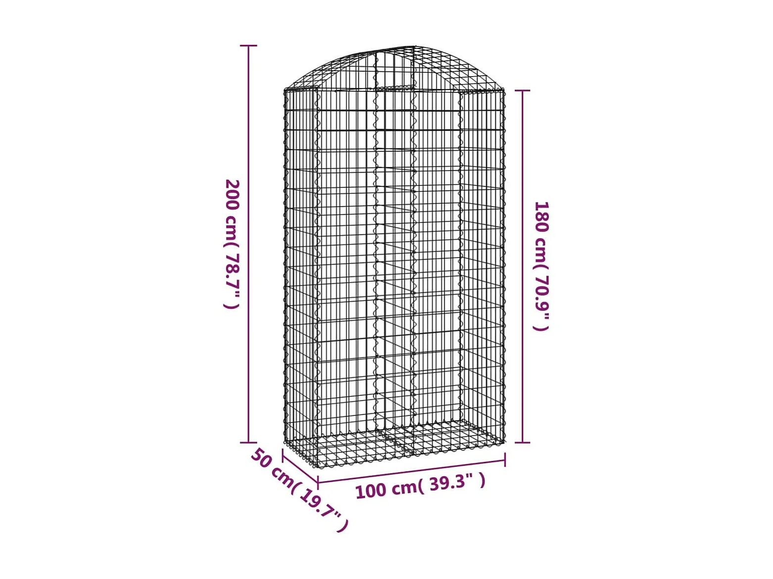 Cesta gaviones forma arco hierro galvanizado 200x50x180/200 cm ES53508