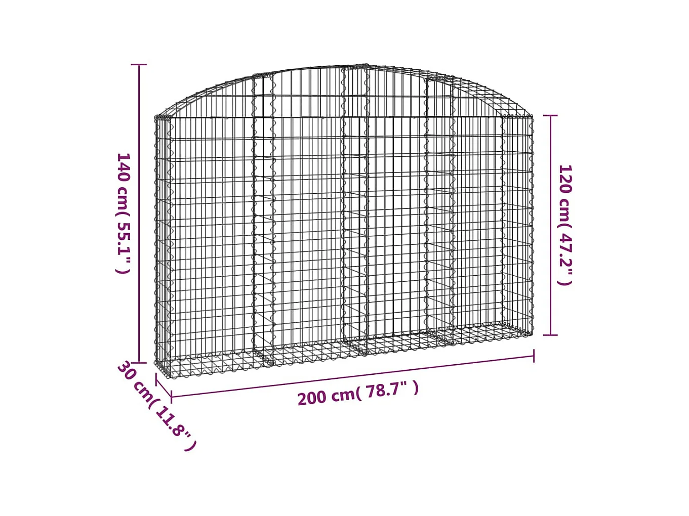 Cesta gaviones forma arco hierro galvanizado 200x30x180/200 cm ES12905