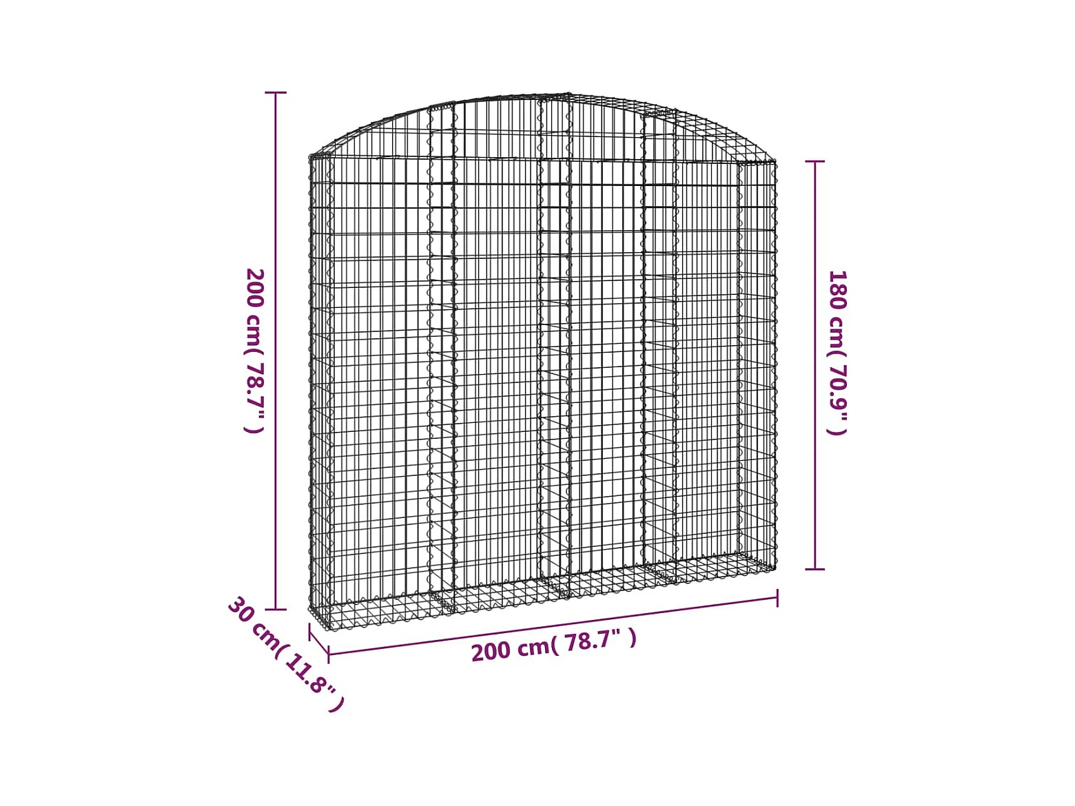 Cesta gaviones forma arco hierro galvanizado 200x30x180/200 cm