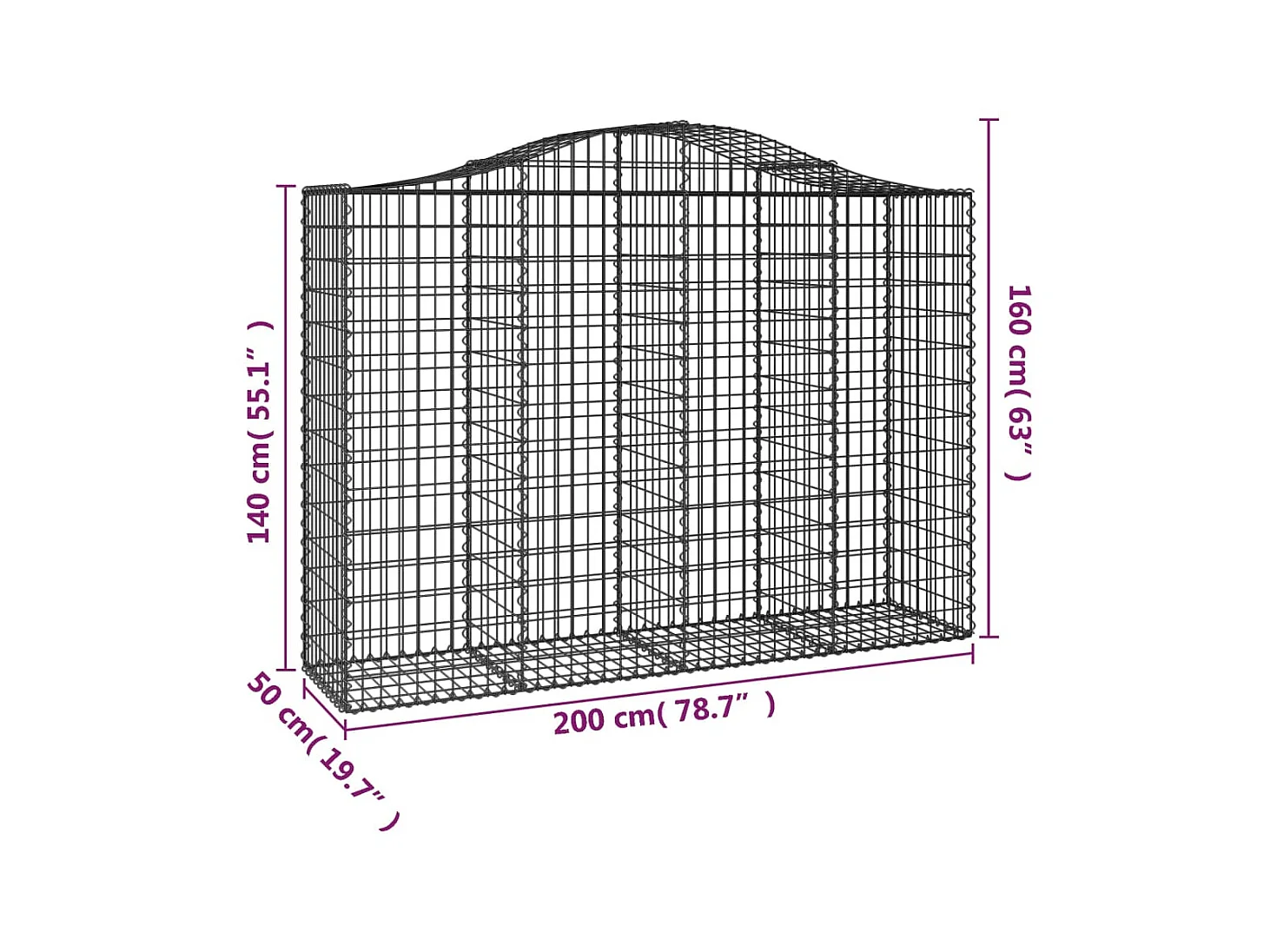 Cestas de gaviones 2 uds forma de arco hierro 200x50x140/160 cm ES11498