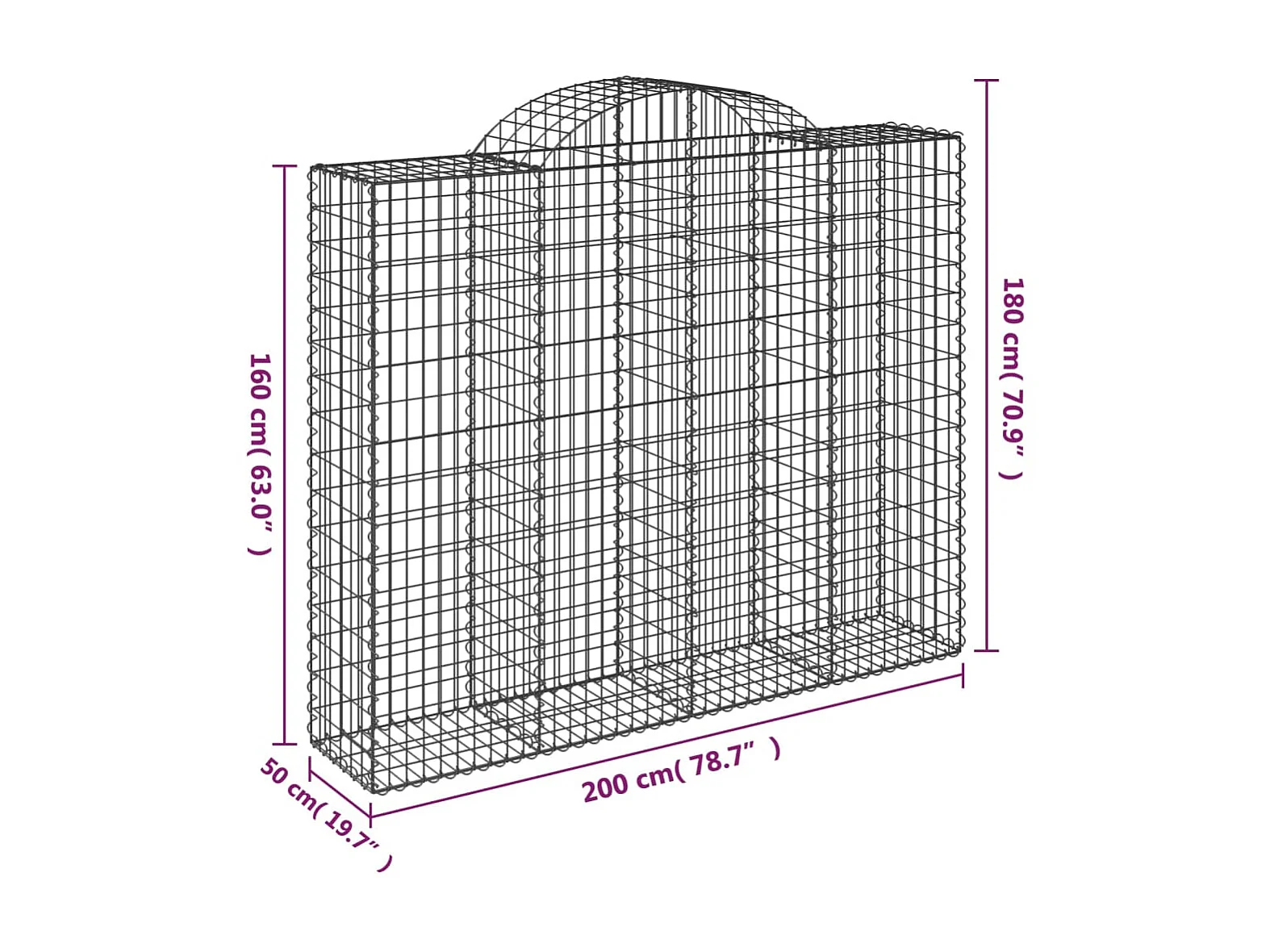 Cesta gaviones forma arco hierro galvanizado 200x50x160/180 cm ES73875
