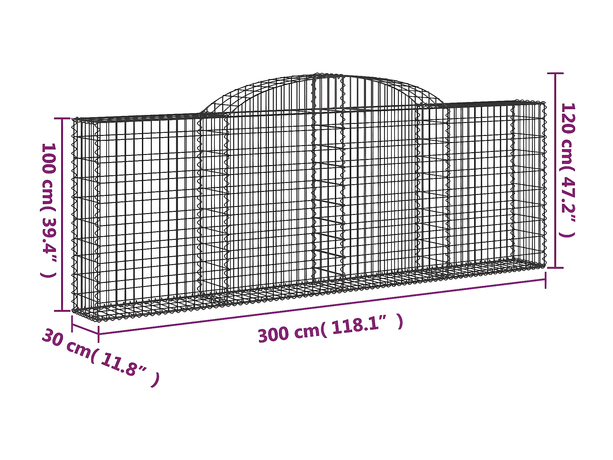 Cesta gaviones forma arco hierro galvanizado 300x30x100/120 cm ES20614