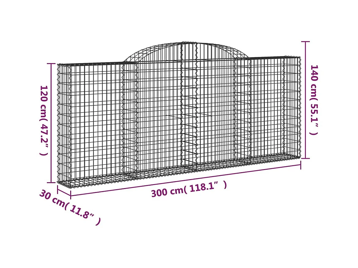 Cesta gaviones forma arco hierro galvanizado 300x30x120/140 cm ES52548