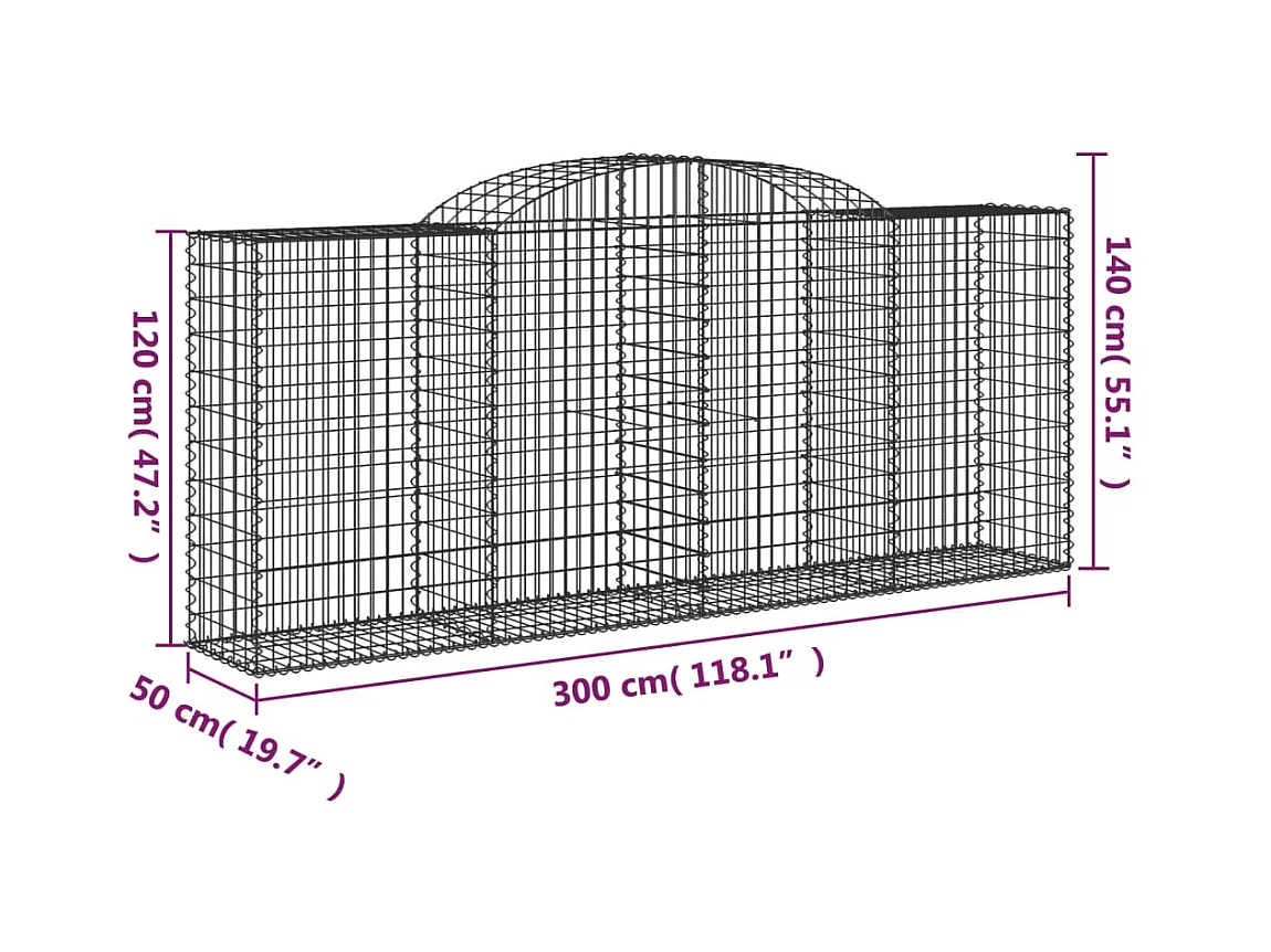 Cesta gaviones forma arco hierro galvanizado 300x50x120/140 cm ES90767