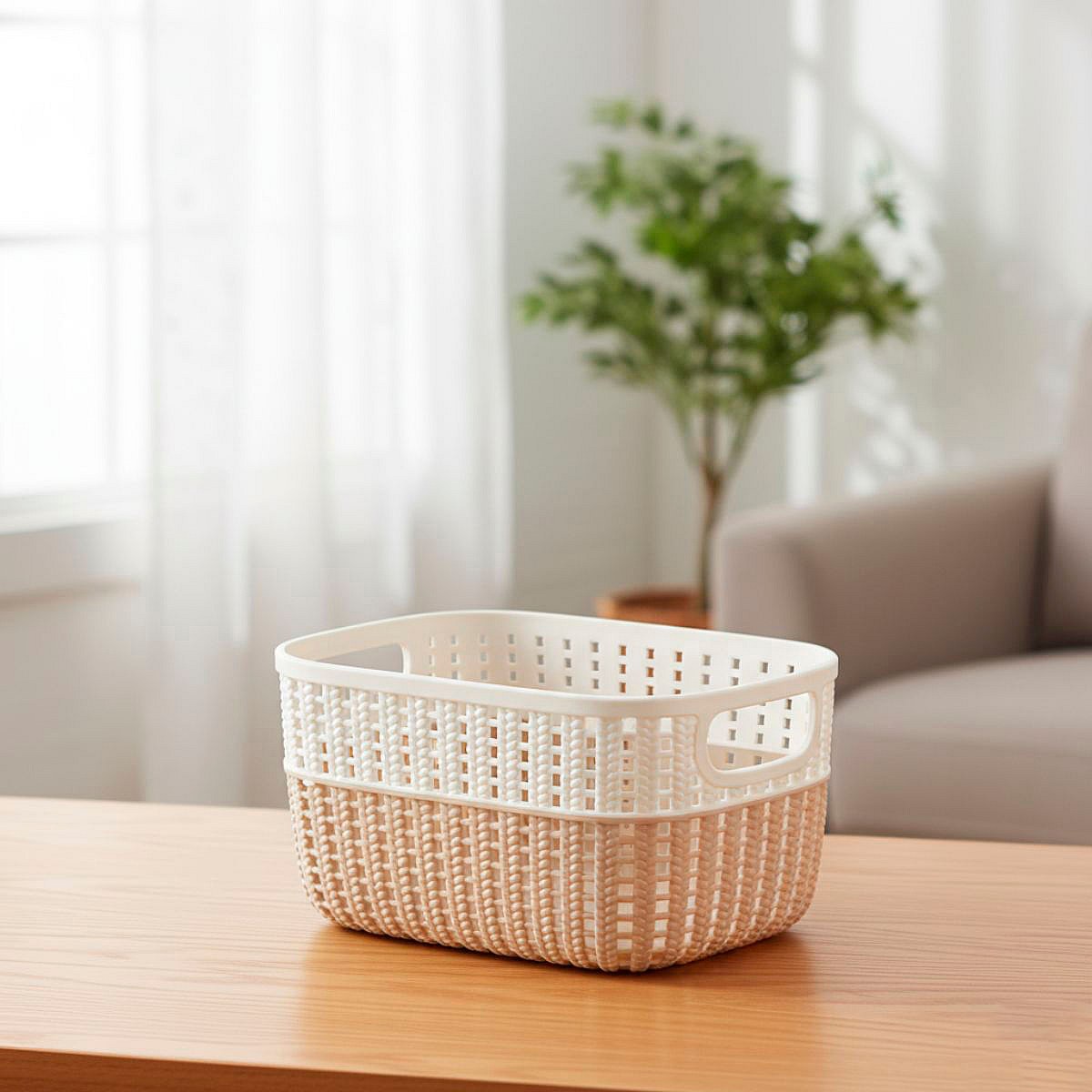 Cesta organizativa con asas beige 12x18x24 cm