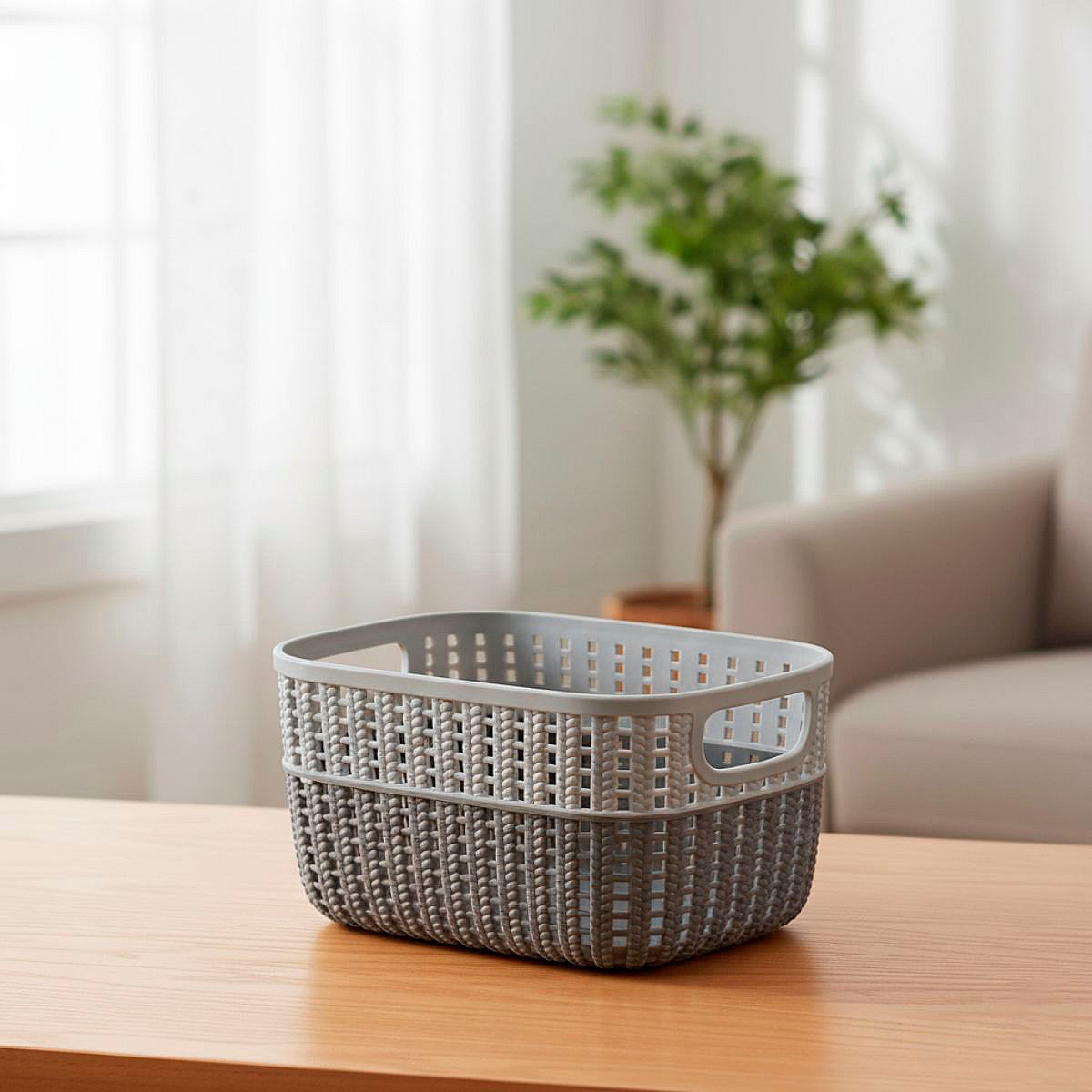 Cesta organizativa con asas gris 12x18x24 cm