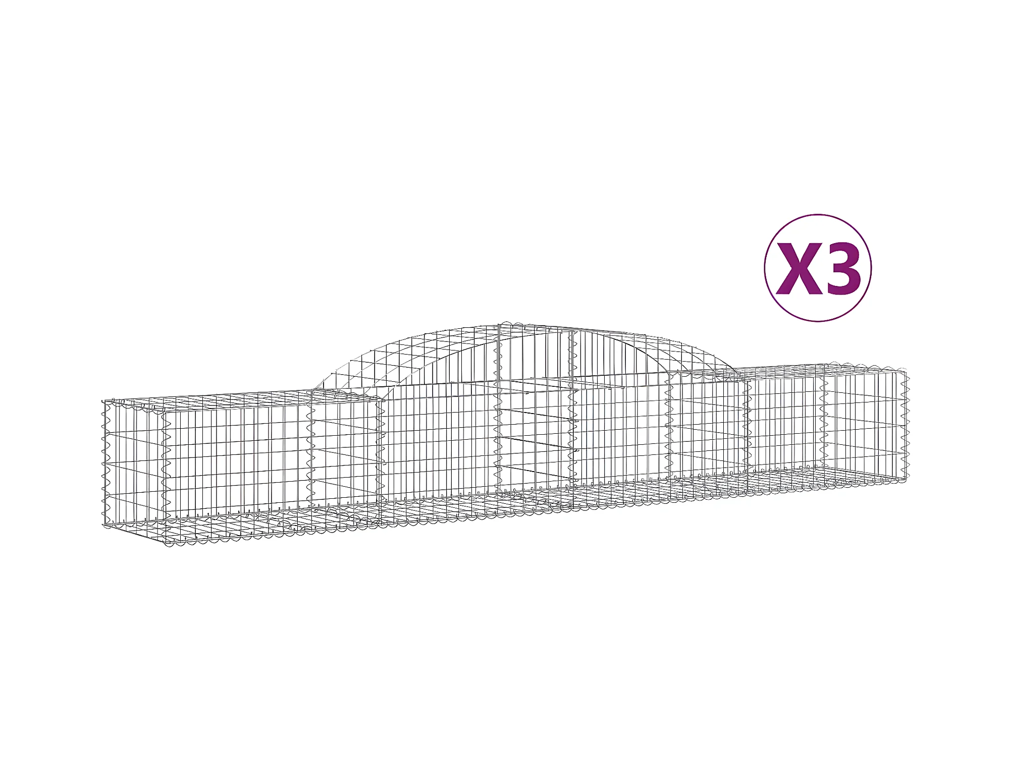 Cestas de gaviones 3 uds forma de arco hierro 300x50x40/60 cm ES22427