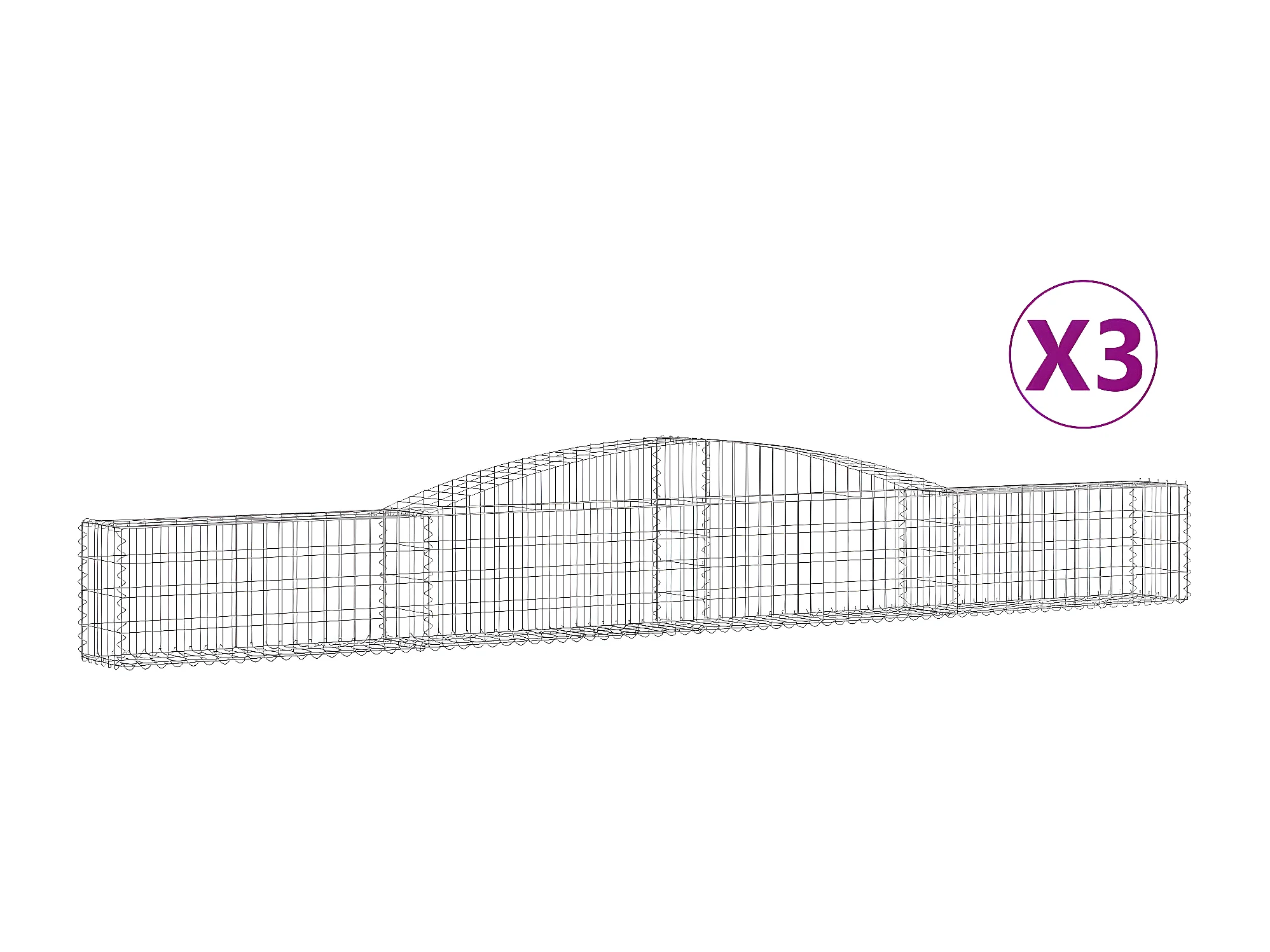 Cestas de gaviones 3 uds forma de arco hierro 200x30x40/60 cm ES76932