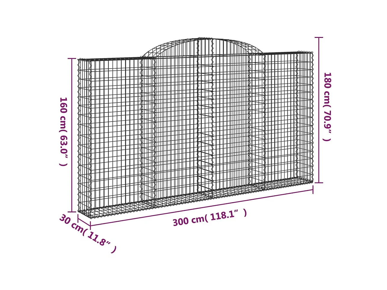 Cestas de gaviones arqueadas 6 piezas 300x30x160/180 cm hierro galvanizado