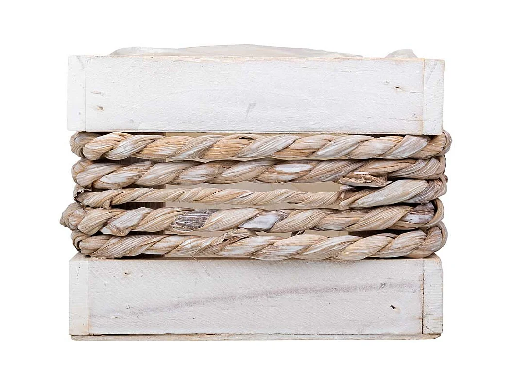 Cesto de madera y cuerda blanco 27x21x14/30