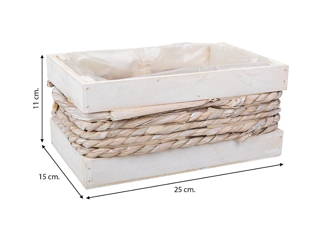 Cesto de madera y cuerda blanco 25x15x11/20