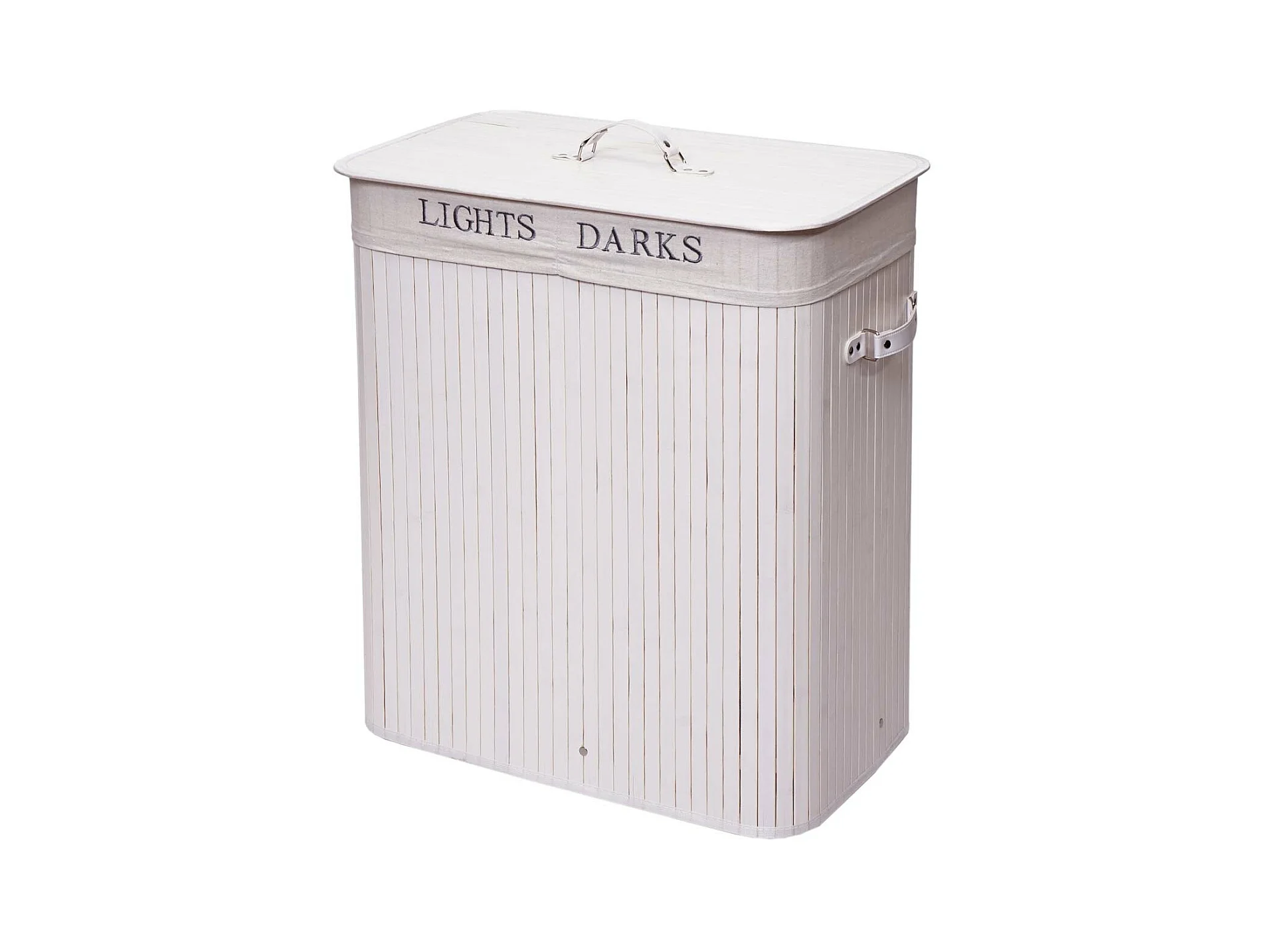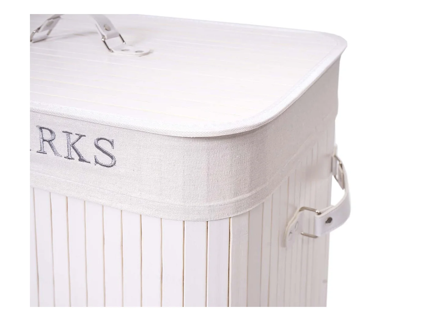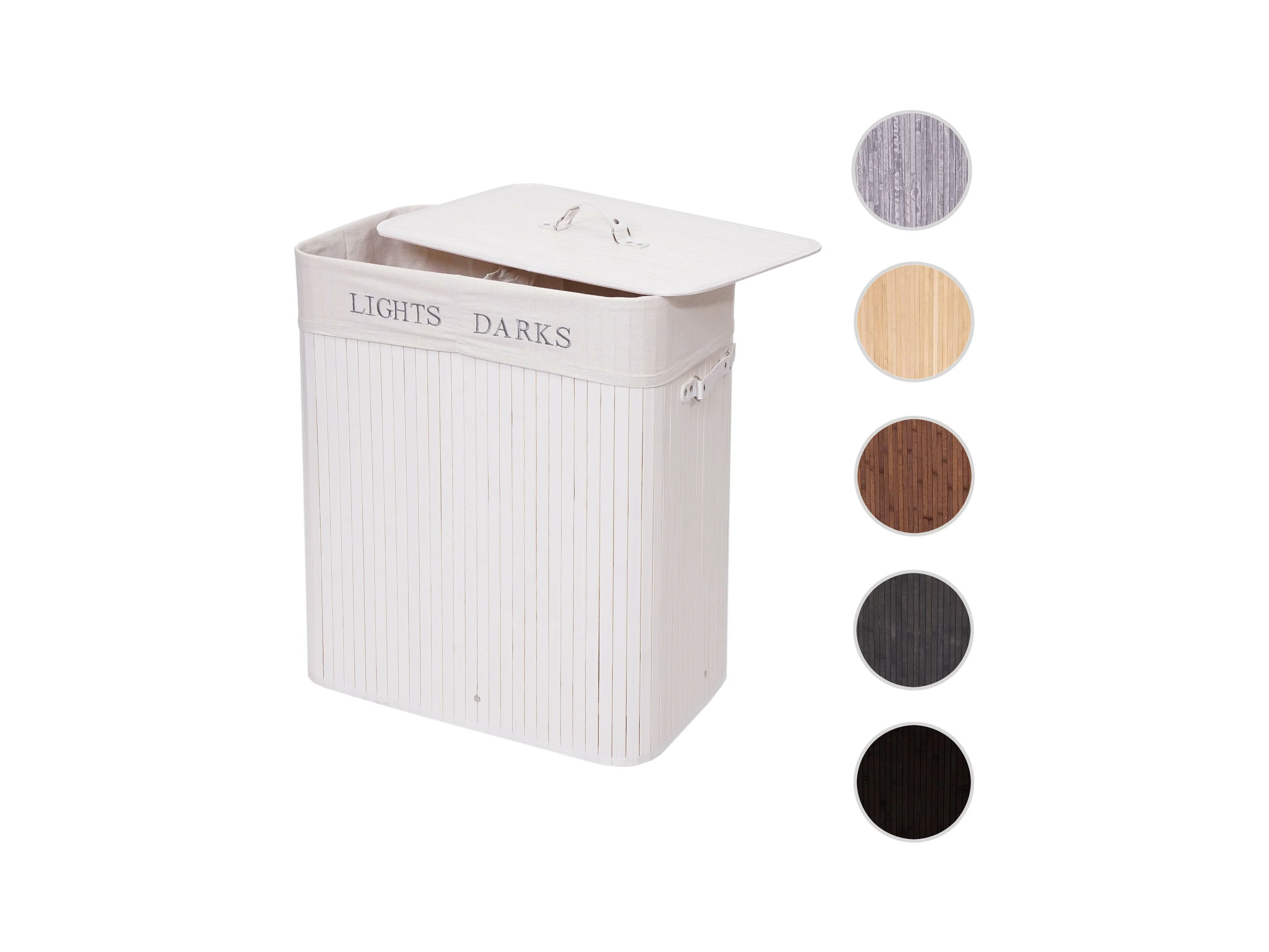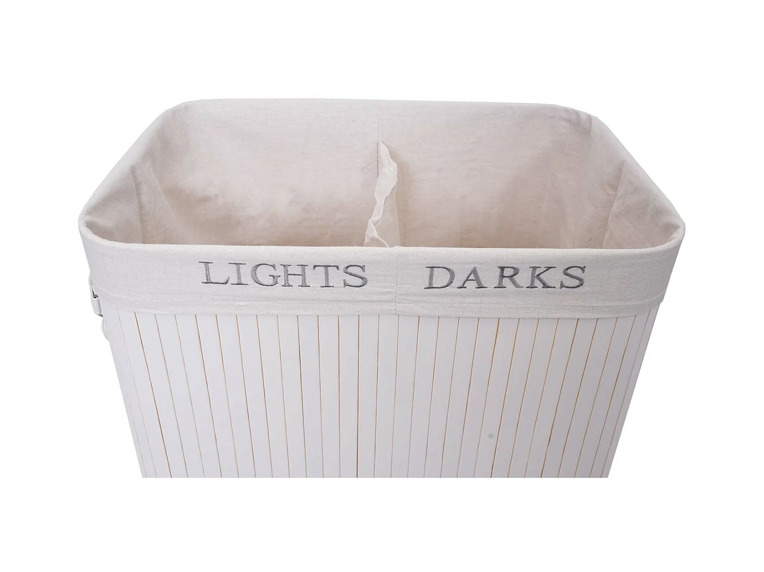 Cesto de ropa con 3 compartimentos y bolsas removibles de bambú y blanco