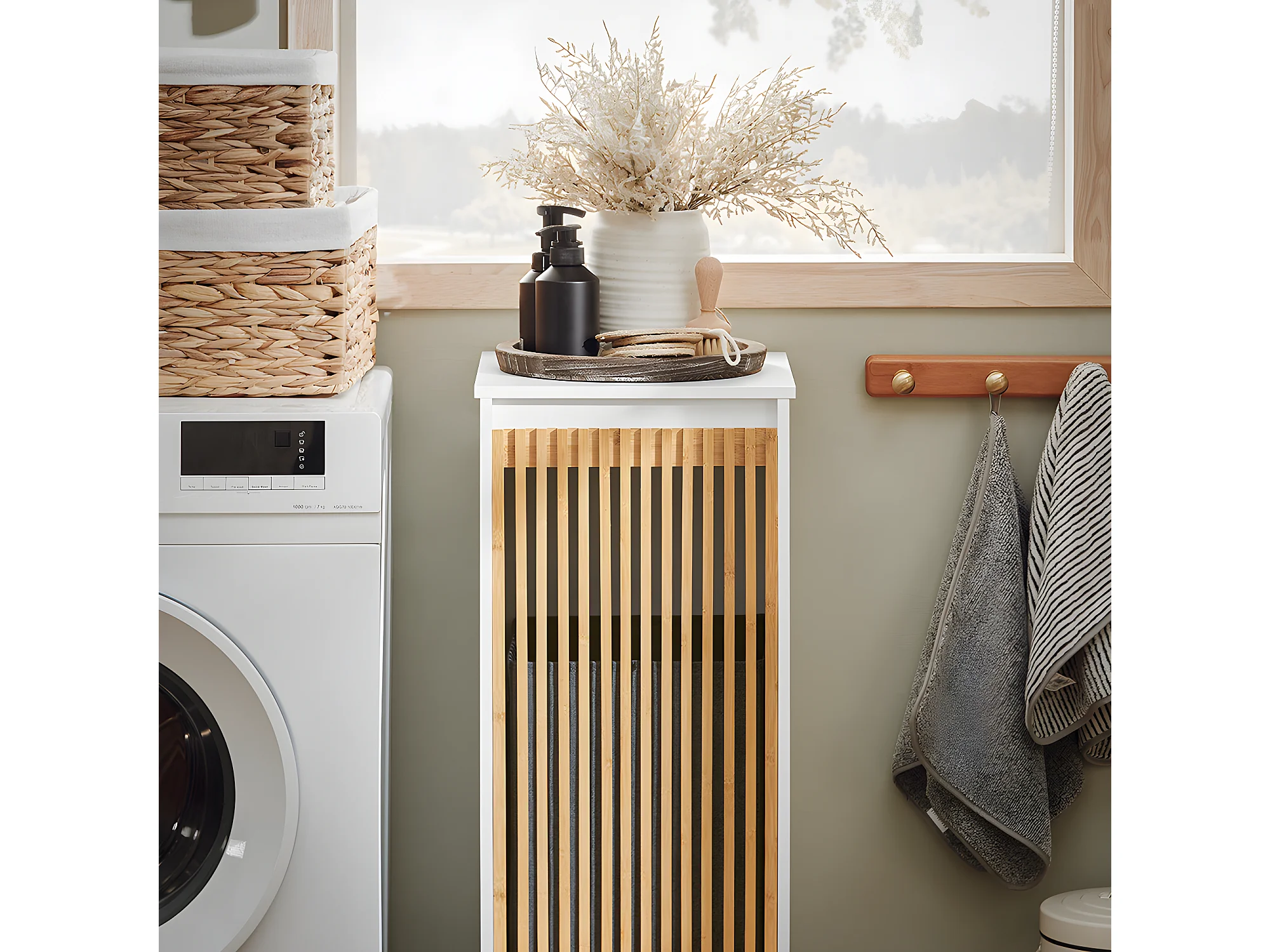 Cesto para Ropa Sucia Armario Multifuncional de Baño Mueble de Suelo con 1 Cesto Blanco 32 x 33 x 85 cm BZR126-W SoBuy ES
