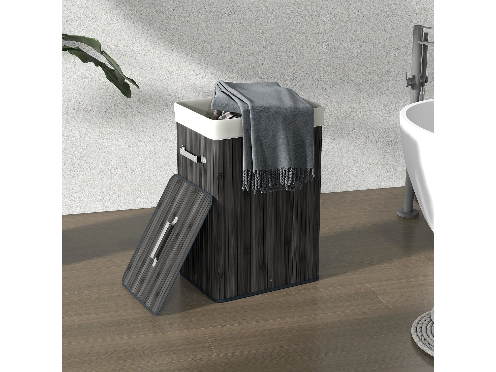 Cesto para ropa sucia Kunzita Homcom plegable con asas gris 60x40x30 cm