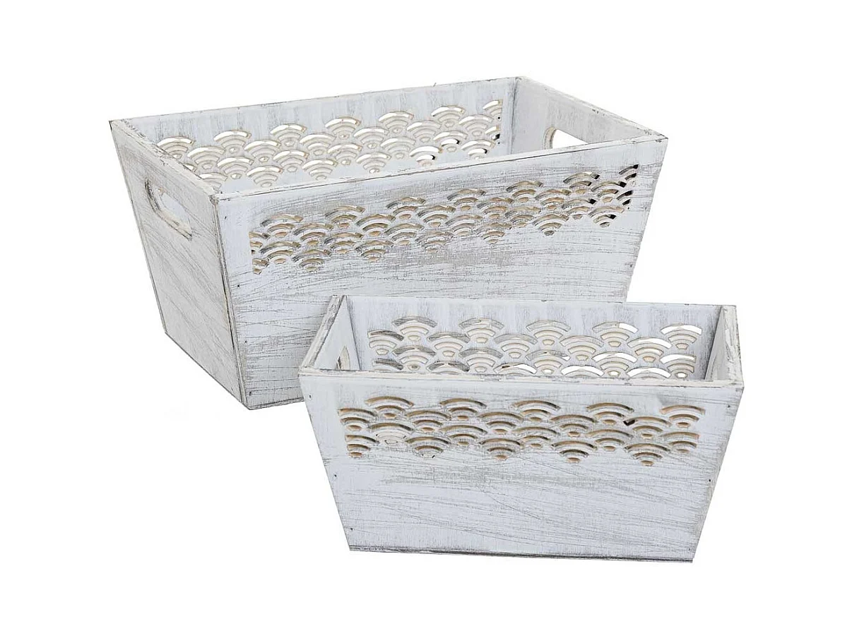 Cestos set 2 pzasde madera blanco 25x17x12h-20x12x9,5
