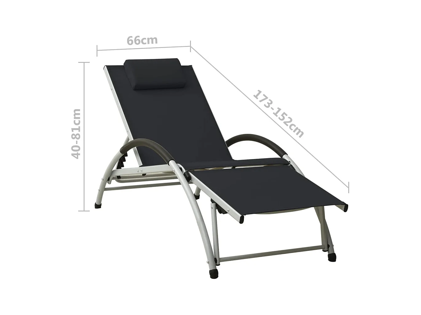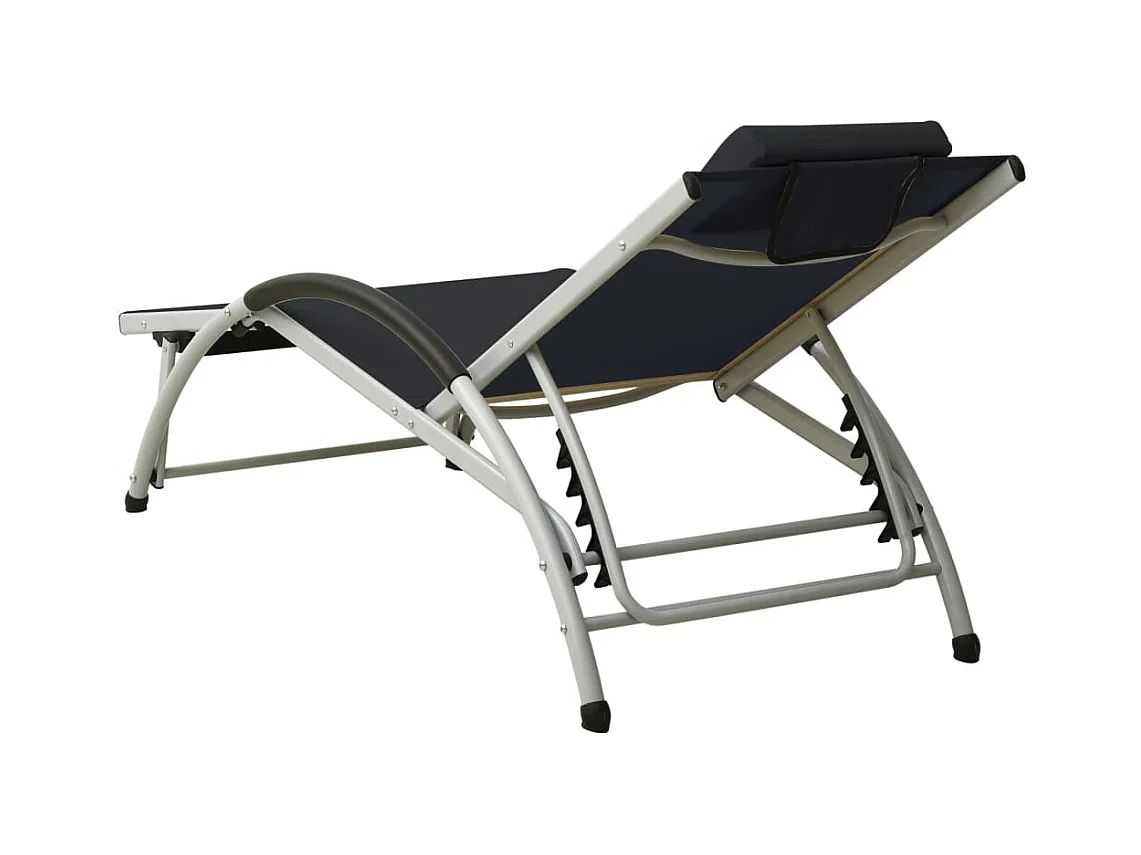 Juego de 2 tumbonas plegables de textilene negro y acero