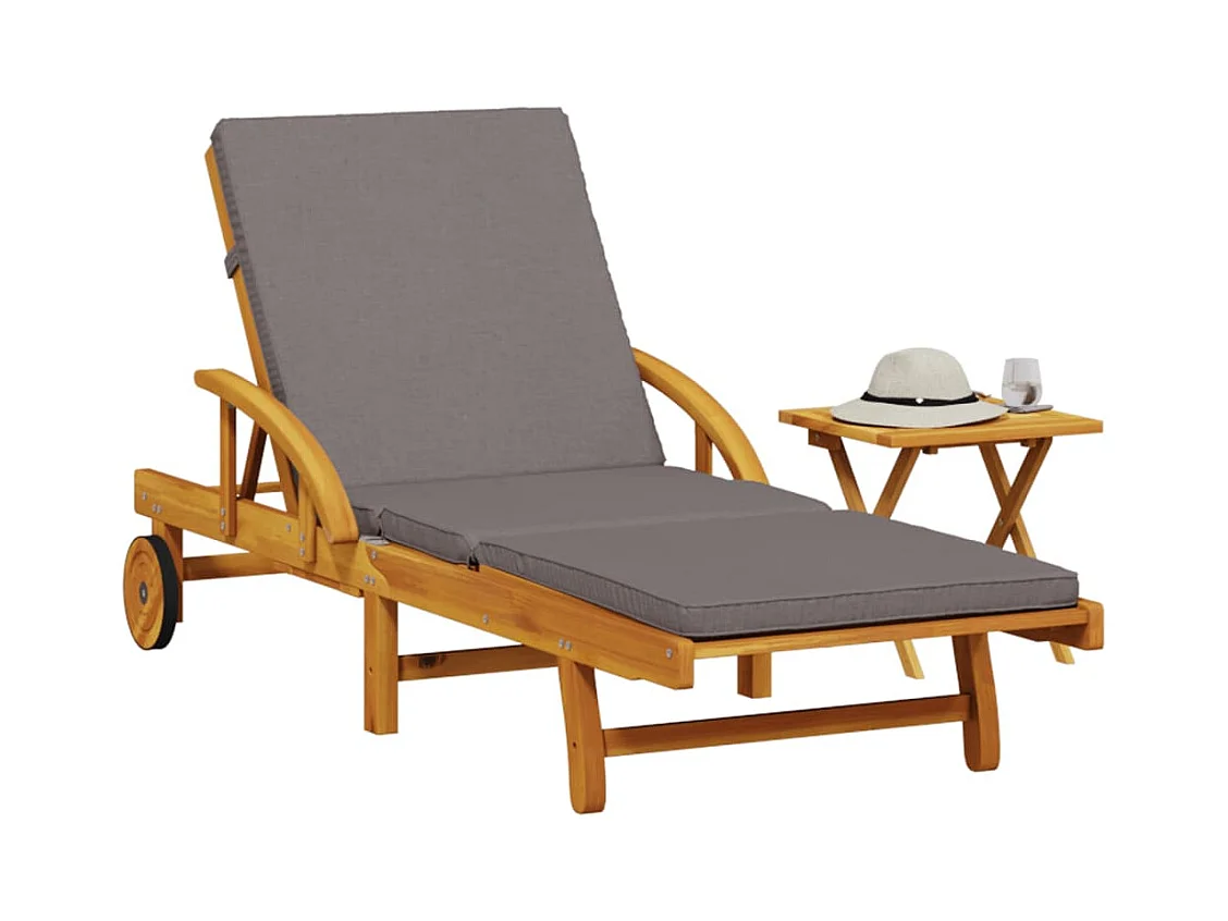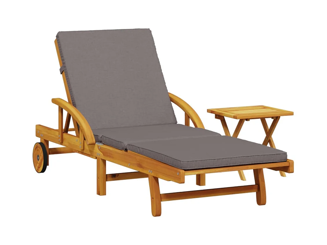 Chaise longue con cojín y mesa en madera maciza de acacia
