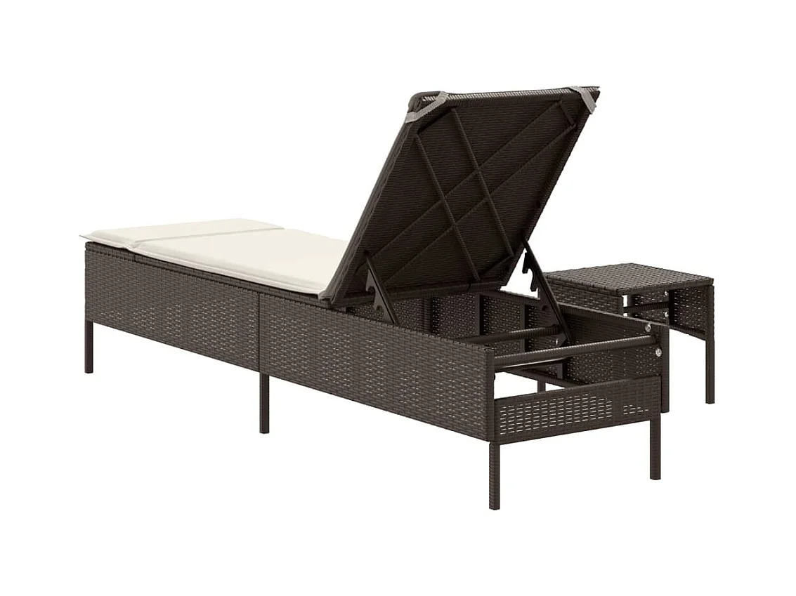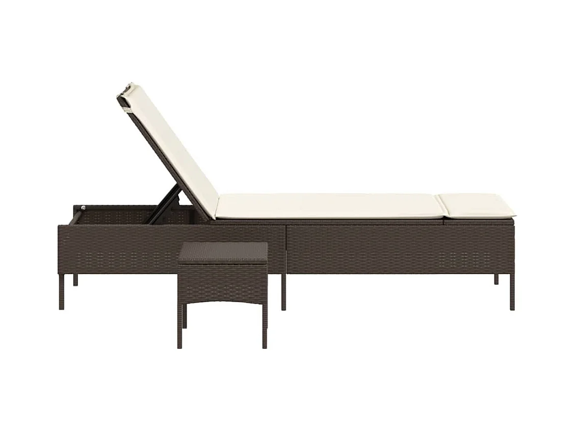 Conjunto de 3 piezas de tumbona y cojines de ratán sintético marrón