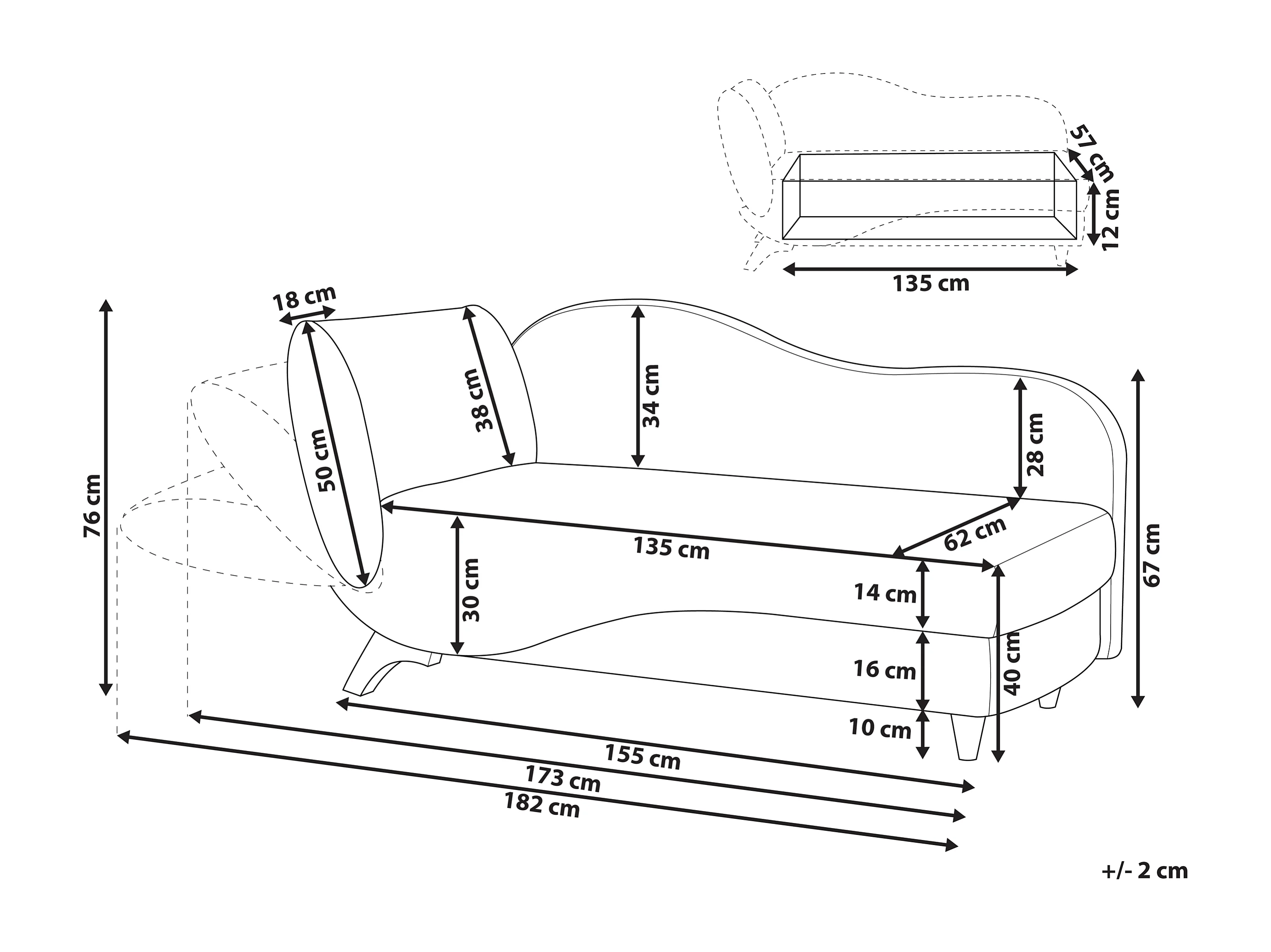 Chaise longue izquierdo MERI Lino sintético Verde con almacenaje