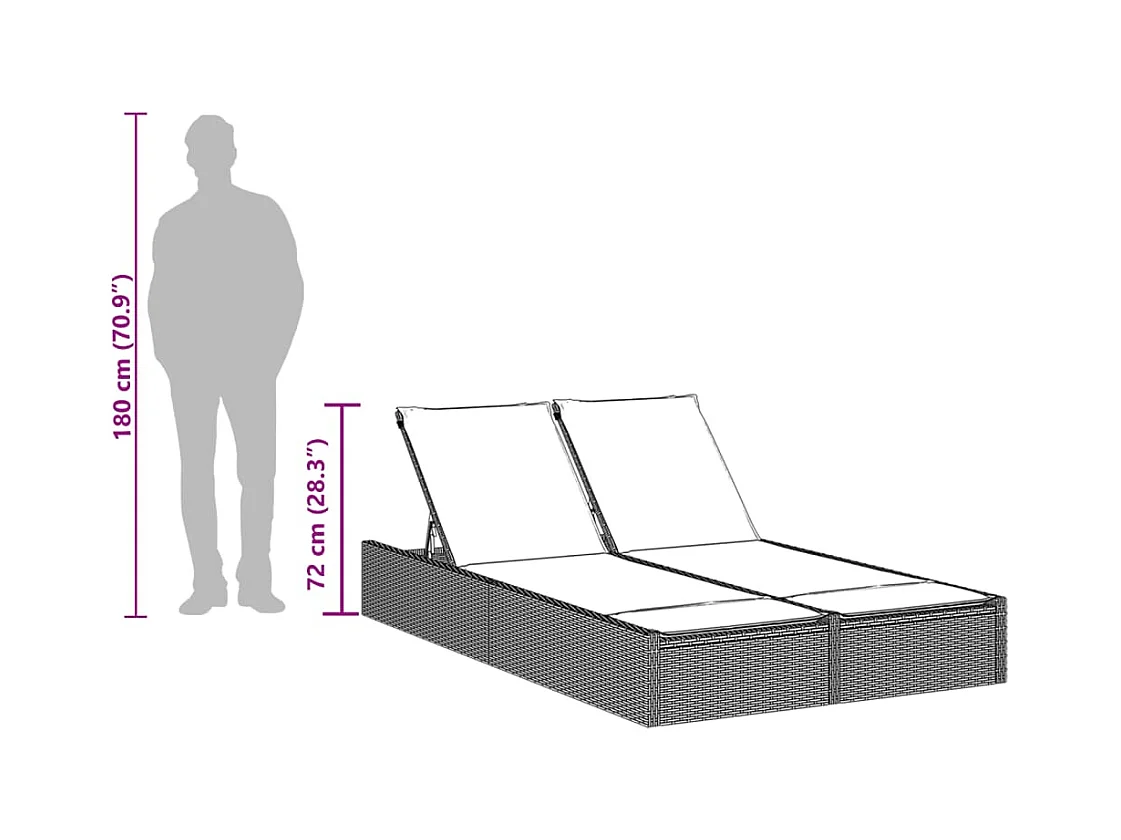 Chaise longue y cojín gris claro 63x200x81 cm resina tejida