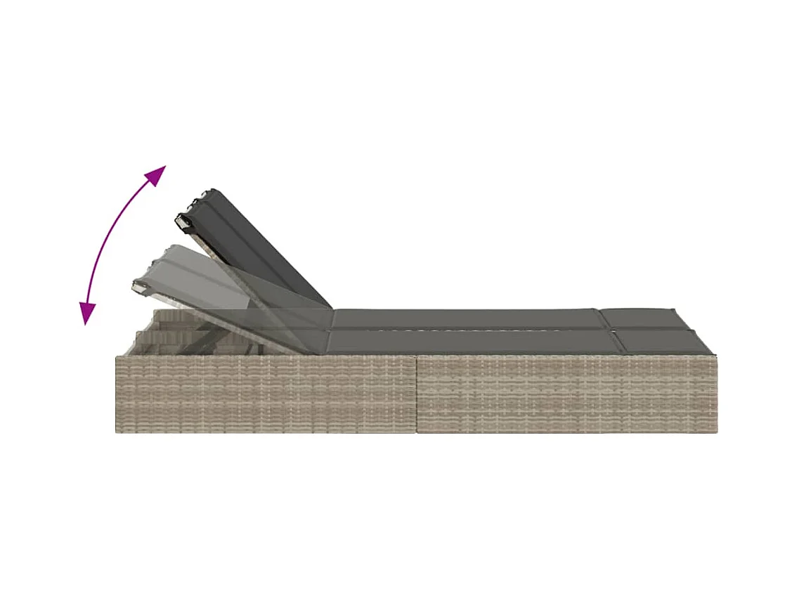 Chaise longue y cojín gris claro 63x200x81 cm resina tejida