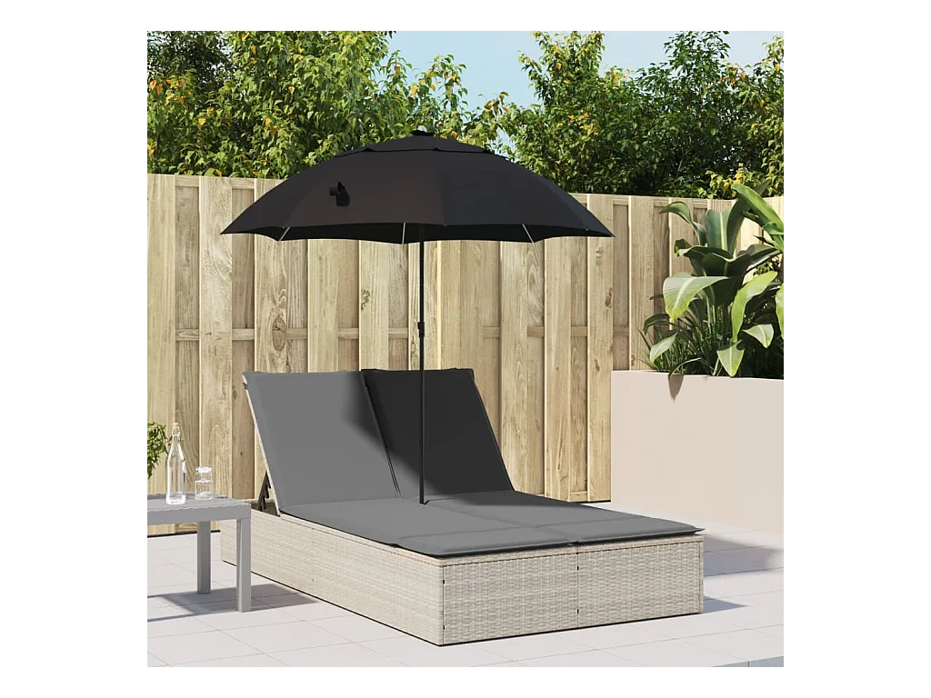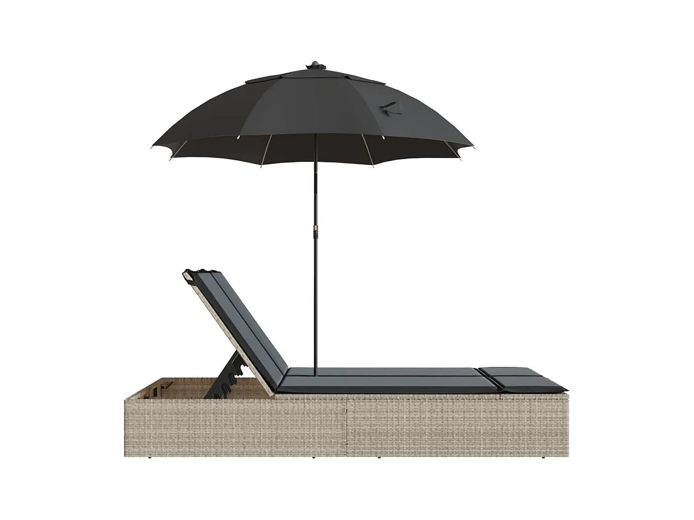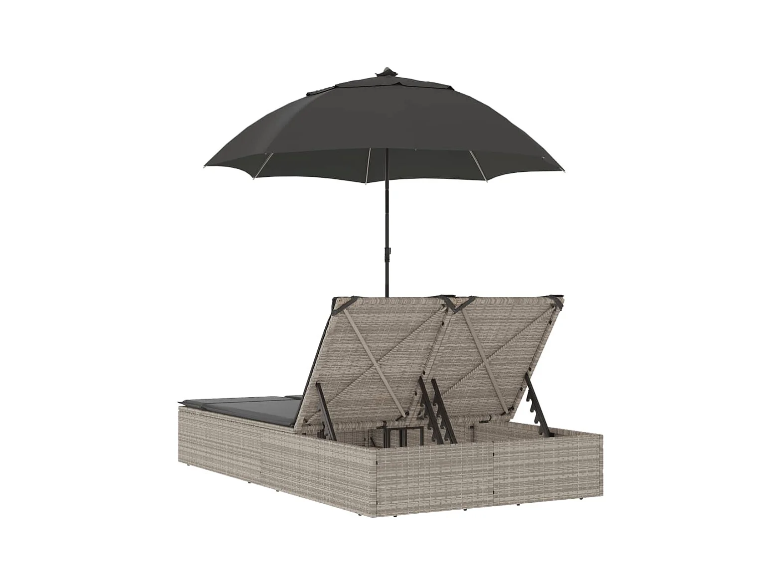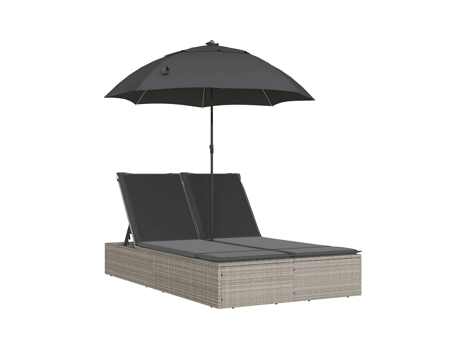 Chaise longue doble con cojines y sombrilla de resina tejida gris