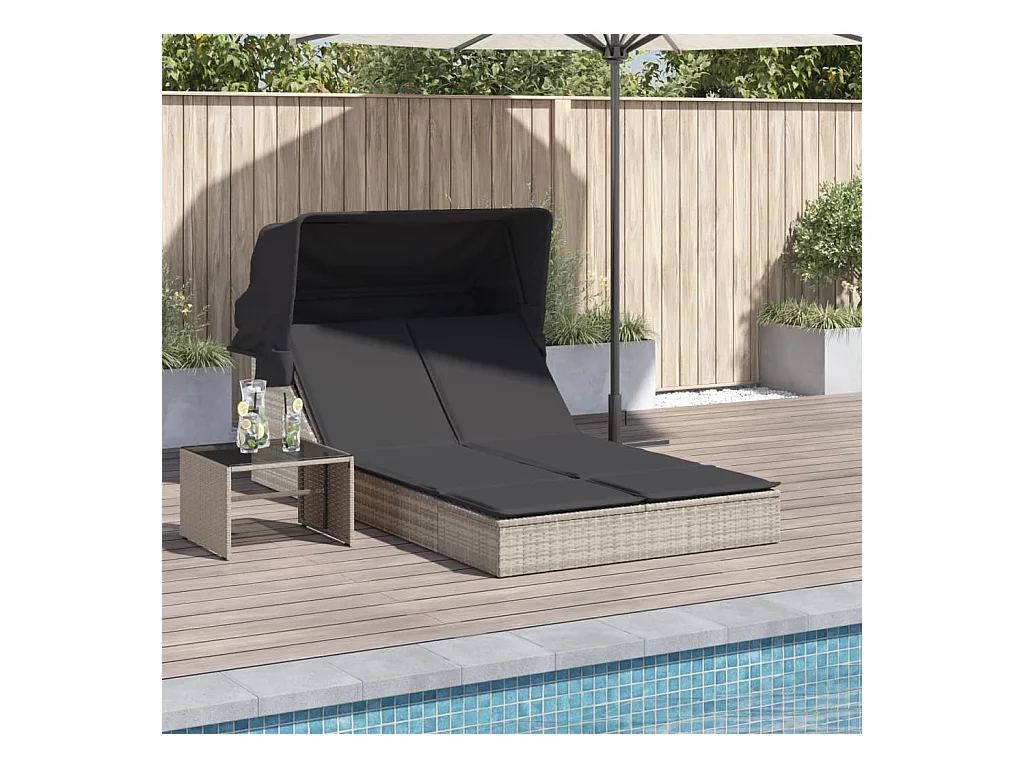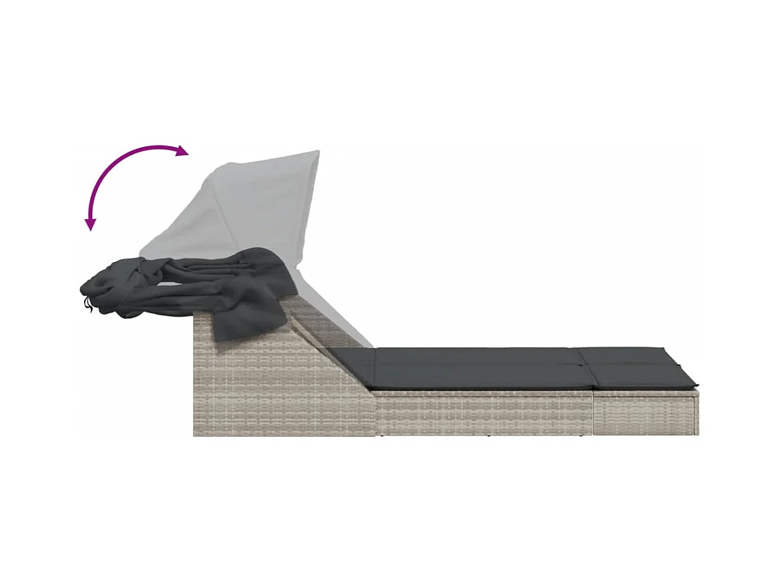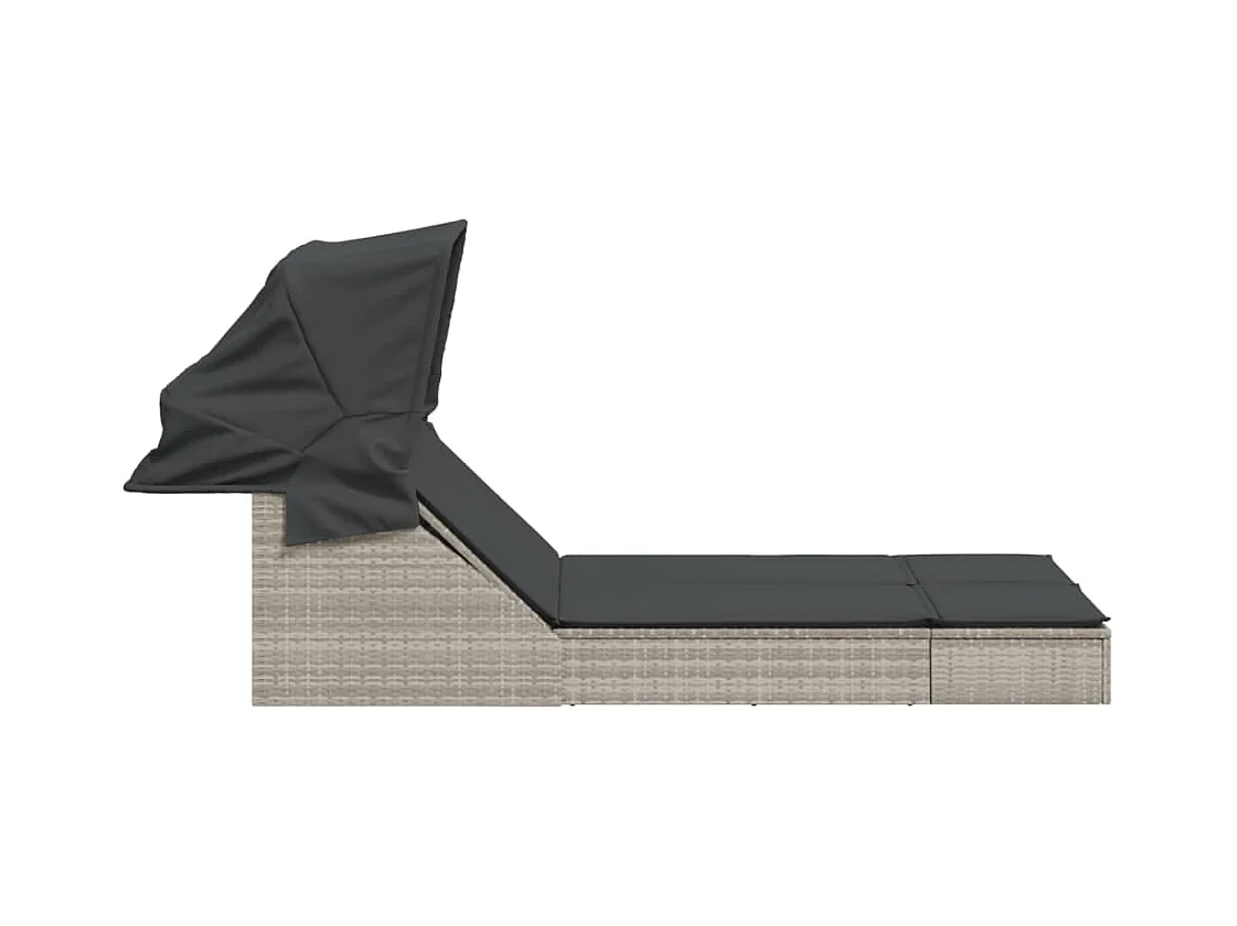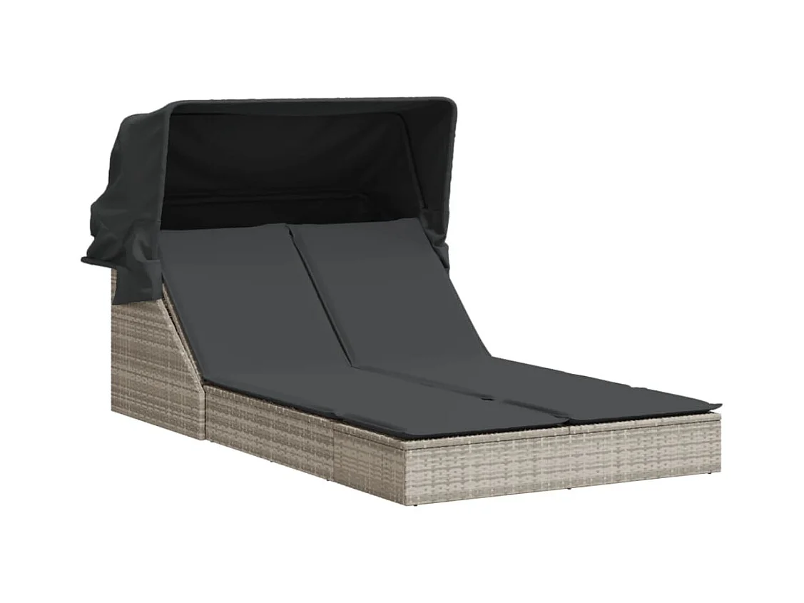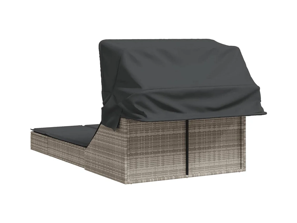 Chaise longue doble con toldo y cojines de mimbre de resina gris