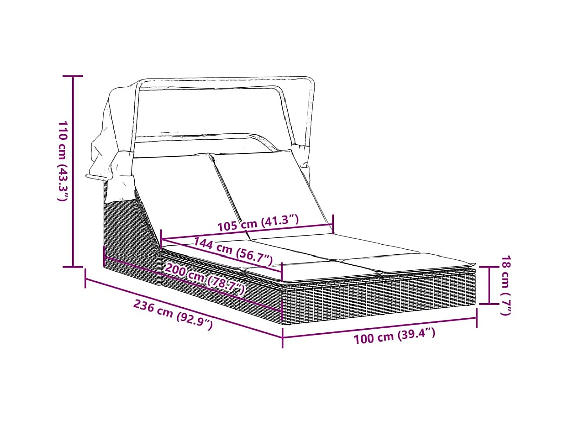 Chaise longue doble con cortinas laterales y superiores